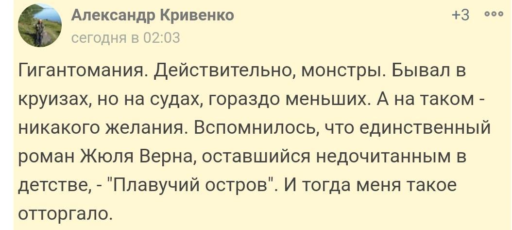 N.B. Нам, в свое время, удалось побывать на многих круизный кораблях разных компаний, и во многих интересных путешествиях на них. Поначалу мне очень нравилось. Но постепенно мне стало нравится в таких поездках все меньше и меньше. Так, что последние лет десять мы уже не ездим в круизные поездки. Я когда-нибудь подробно расскажу о некоторых их них. Особенно про их плюсы и минусы. :)