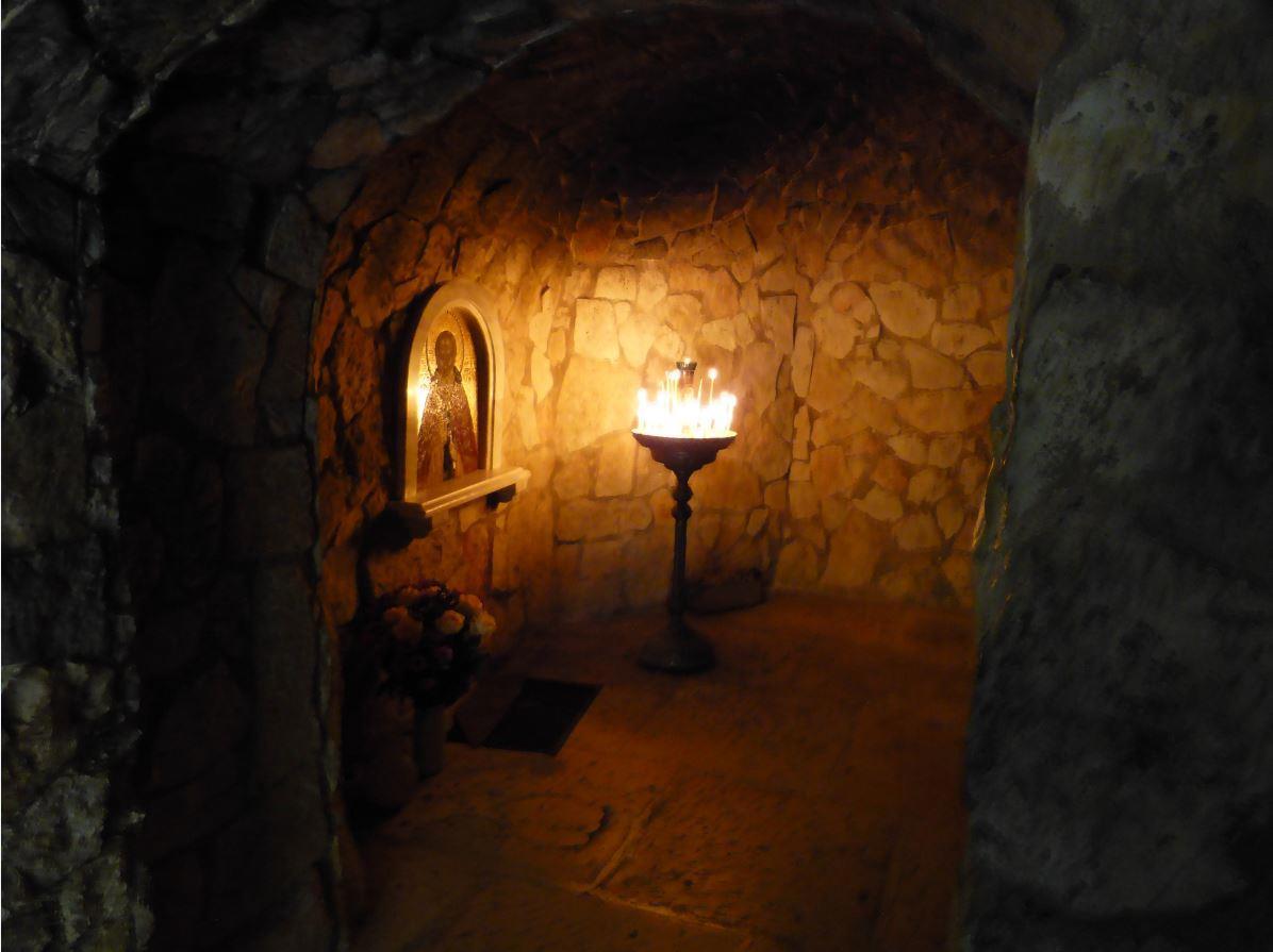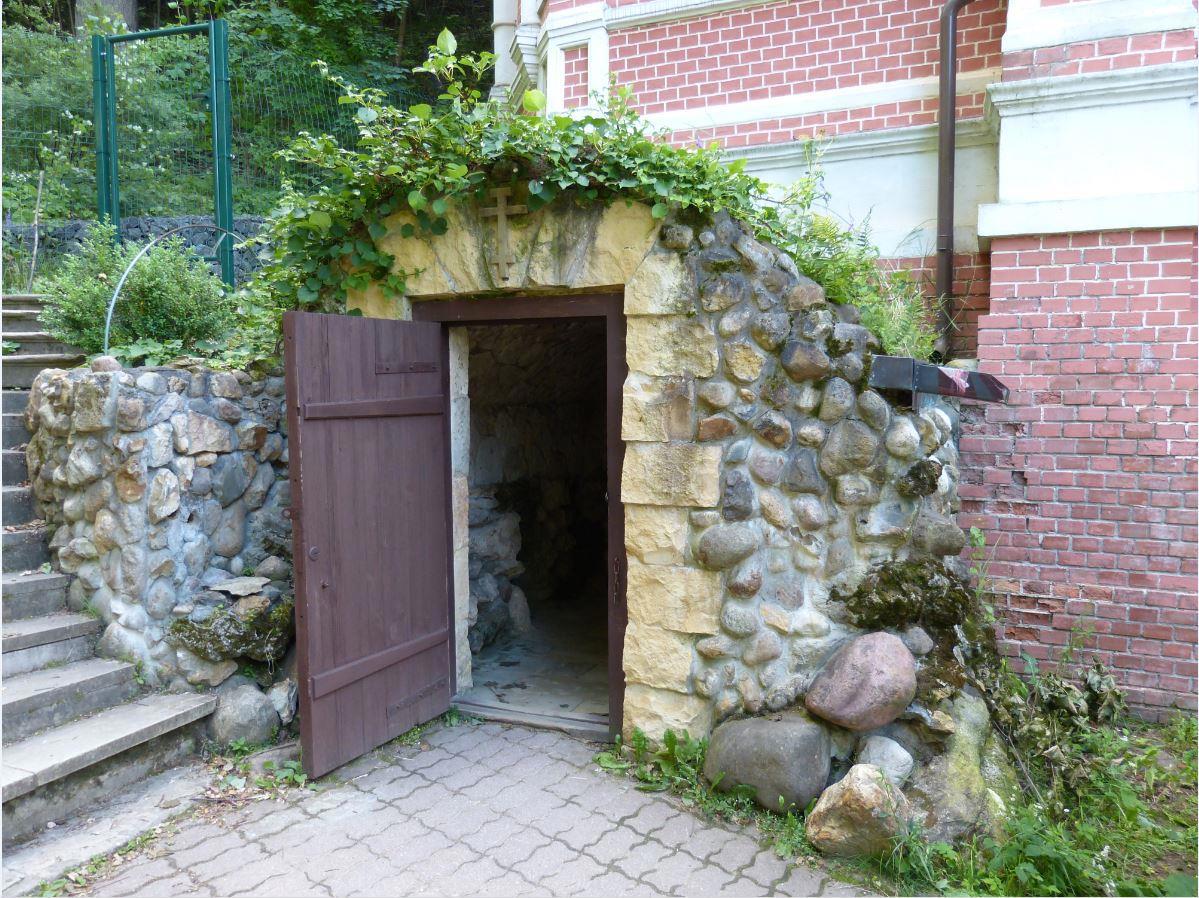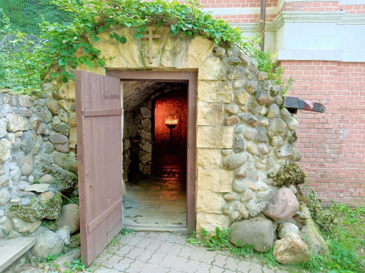 можно увидеть дорогу к скиту Саввы Сторожевского. Идти туда — чуть больше километра. Пещера на склоне стала частью храма преподобного Саввы. Это наводел (её восстановили к шестисотлетию со дня смерти основателя монастыря в 2007 году).