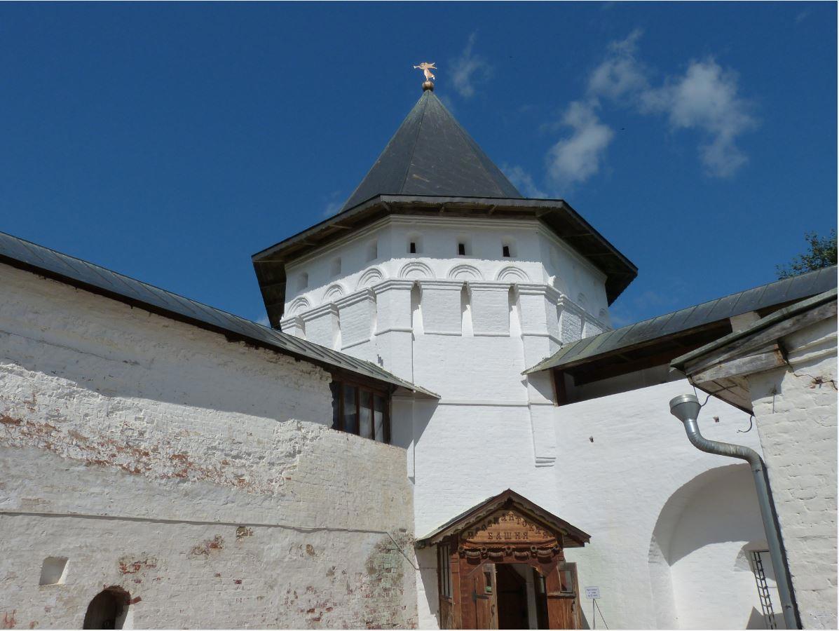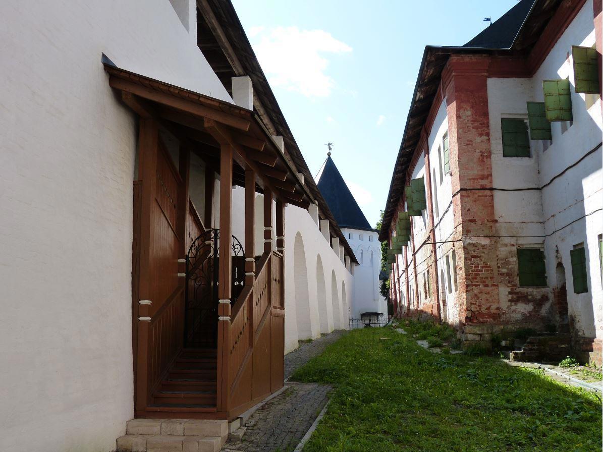 Через Провиантскую башню можно подняться на стены и посмотреть сверху на Трапезную палату и звонницу.