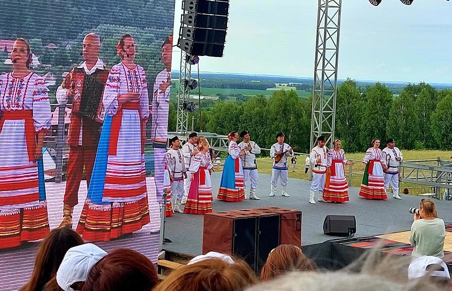 ...правда во время концерта случился яркий смешной эпизод: прямо во время выступления Сростинского ансамбля народной песни на сцену выбежал очень артистичный пёс и сорвал горячие аплодисменты зрителей...