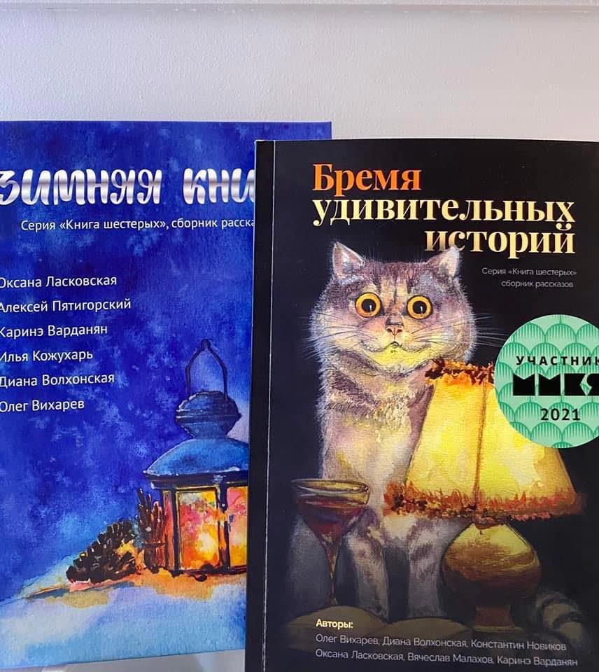 Историю с изданием моих рассказов можно публиковать как мотивационный текст для МТА. Я просто вытаскивала себя из болота (зачеркнуто) депрессии за косичку, как барон Мюнхгаузен, выговаривалась в сочинениях – писала веселые истории (чем тяжелее было мое состояние, тем веселее получался рассказ) и публиковала в соцсетях. И меня заметила создательница группы проектов «НяшКульт» Оксана Ласковская. И пригласила в сборник. Сначала в один, потом в другой. Были презентации в книжном клубе «Достоевский» в Москве, были прекрасные чтения – мои рассказы читали актеры Таня Мазур и Илья Кожухарь. Я получила обалденные иллюстрированные сборники, гонорар и массу положительных эмоций. Все это не выходя из дома (я веду замкнутый образ жизни). Книги на бумаге продаются в книжном клубе «Достоевский» (Москва, Воздвиженка,1), участвовали в книжном форуме в Петербурге и Московской книжной ярмарке, разлетелись по миру в прямом смысле слова. На данный момент сборники не улетели почтой только в Антарктиду и Африку. Вот такая география.