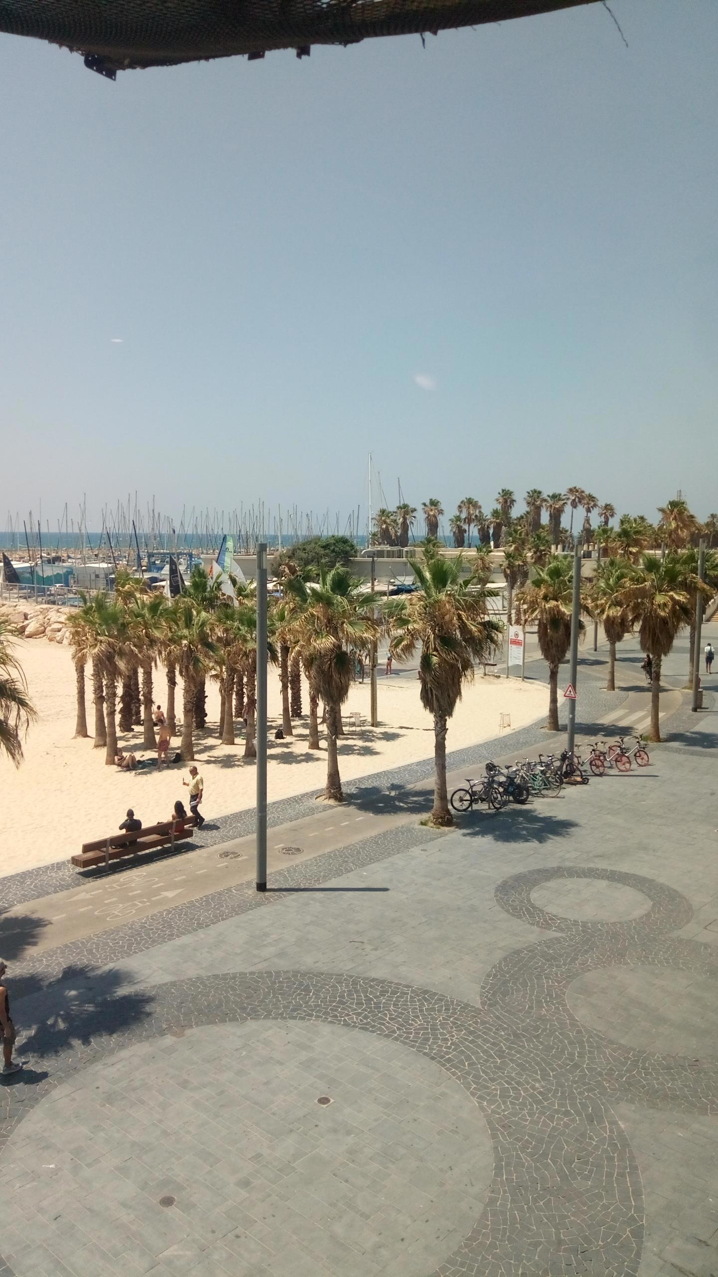 Песок на пляже желтый и довольно крупный. Очень много красивых ракушек, я насобирала себе целый пакетик. Вход бесплатный, но за шезлонг будь любезен отстегнуть шекелей. Мы честно пошли к автомату, дабы заплатить, и нашли там на свою удачу оброненную кем-то сдачу.