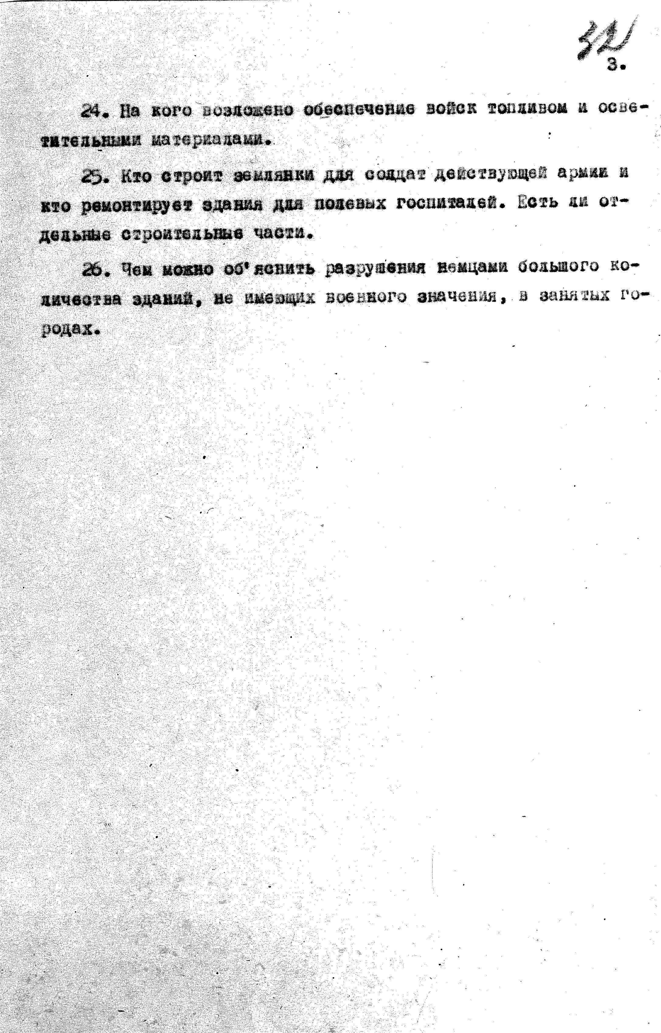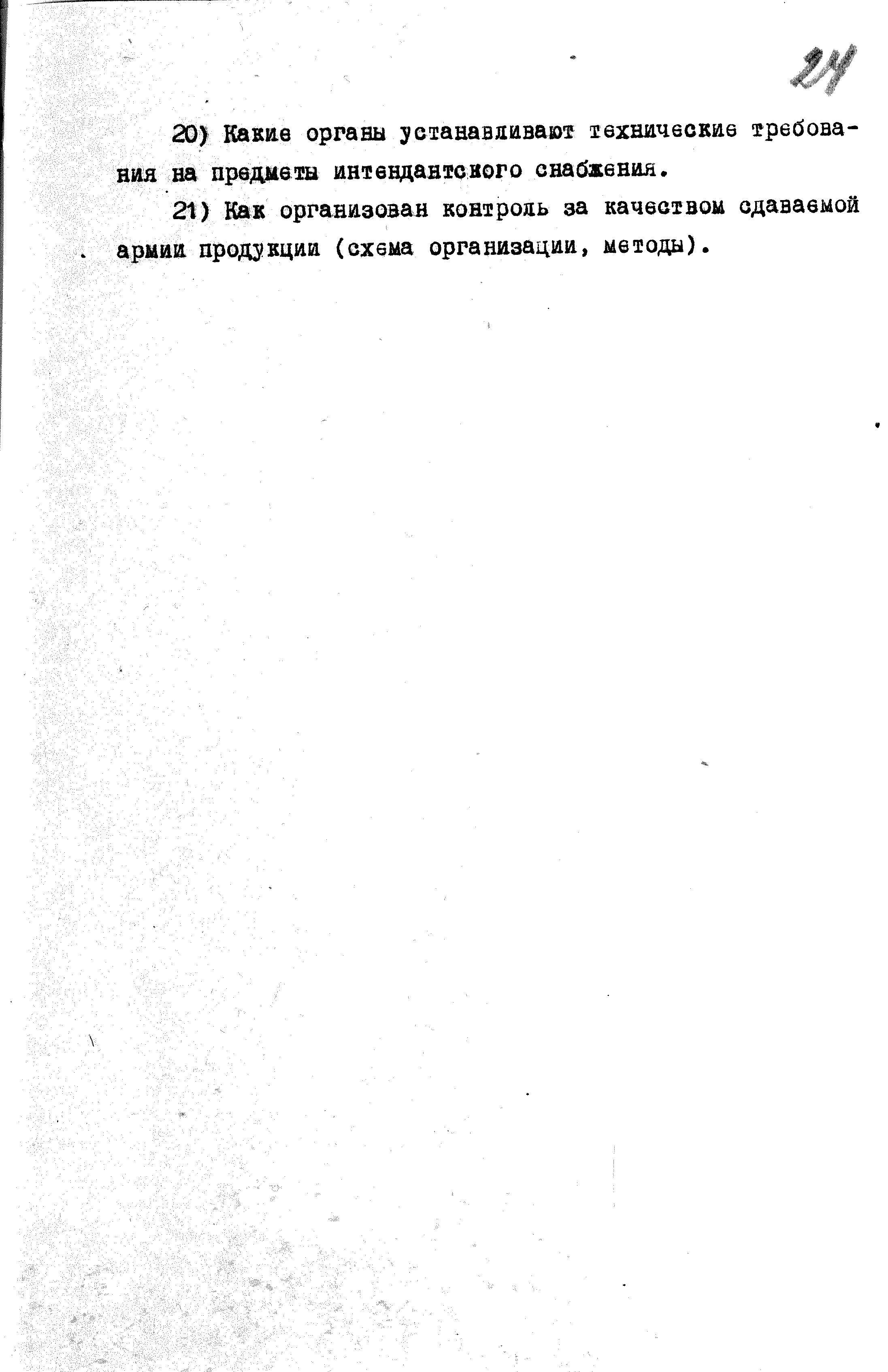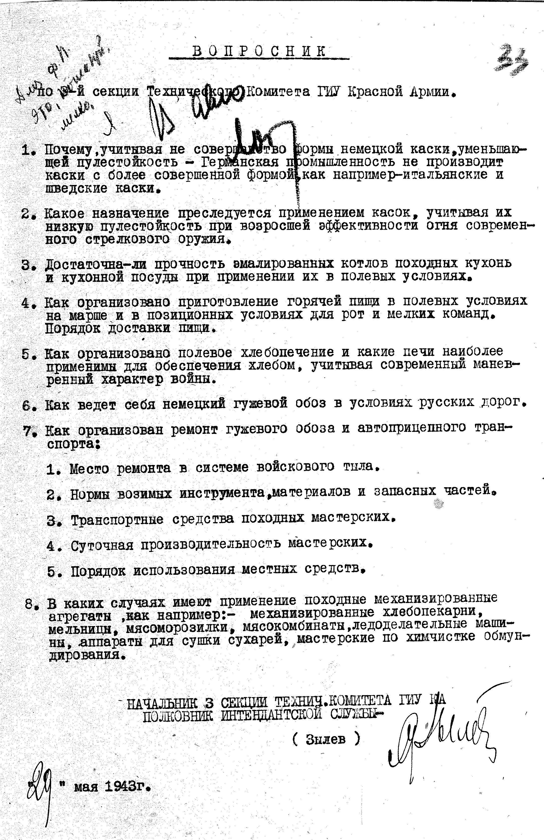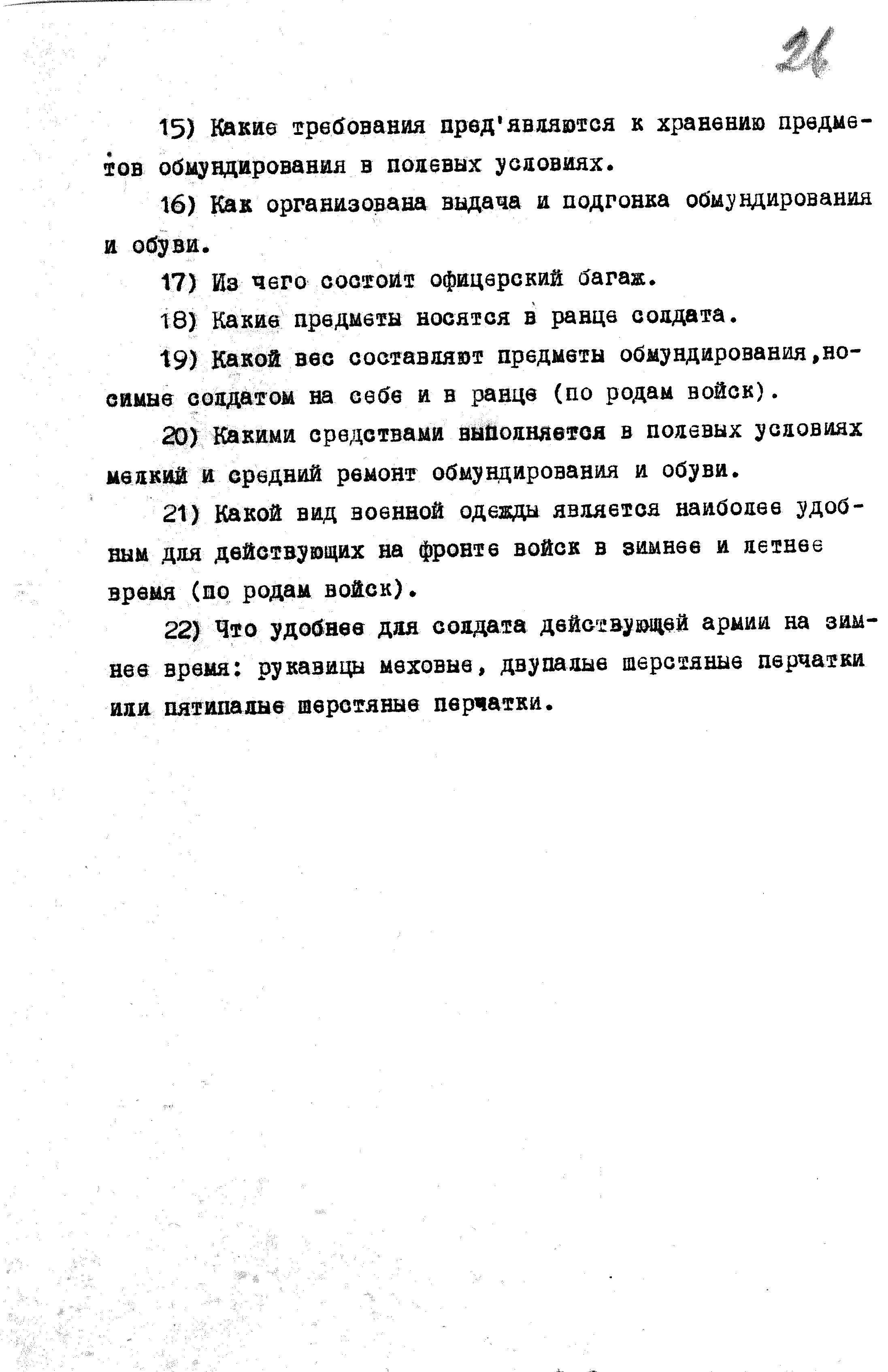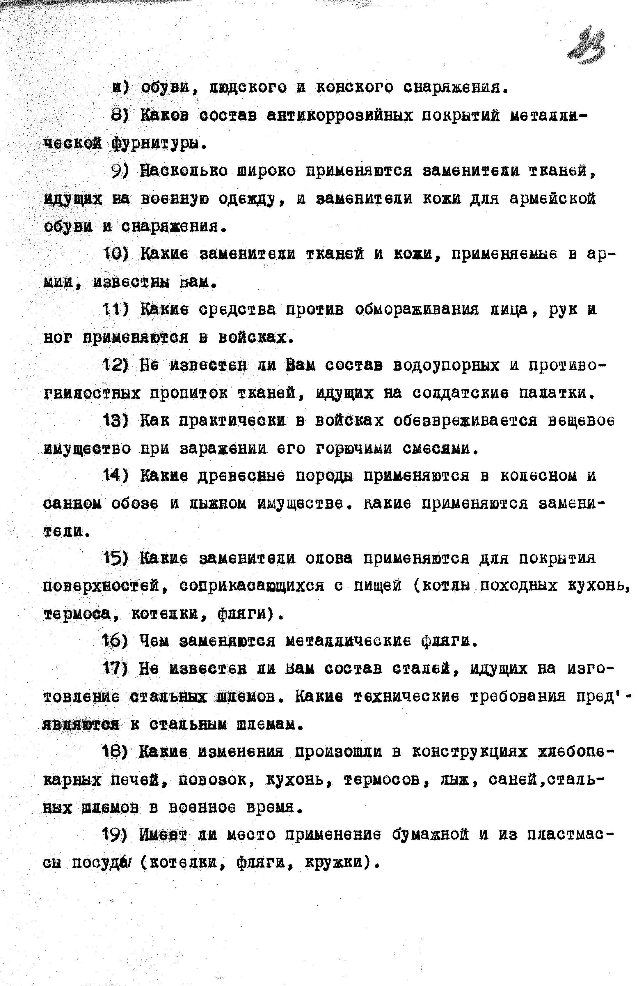 Перечень вопросов по интендантской службе для опросов пленных гитлеровцев