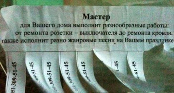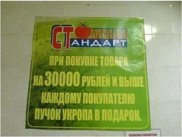 Автор: Ольга АнуфриеваТворения не очень талантливых маркетологов или, наоборот, маркетологов "от Бога". Читаешь иногда и диву даёшься, не знаешь смеяться или удивляться. Или это просто человеческая лень из-за которой допускают значительные ошибки - так как меняется смысл написанного. Встречается даже довольно интересное творчество)