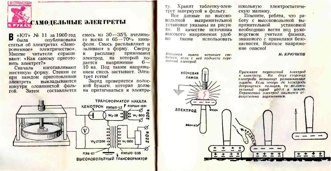 Электреты - материалы, которые обладают свойством долго хранить электрический заряд. И соответственно его использовать, тратить, когда надо. Похож, имхо, по принципу использования и свойствам на магнит, хотя магнит это другое. Используются сейчас, вроде, в микрофонах, акустических датчиках каких-то, запоминающих устройствах и т.п.