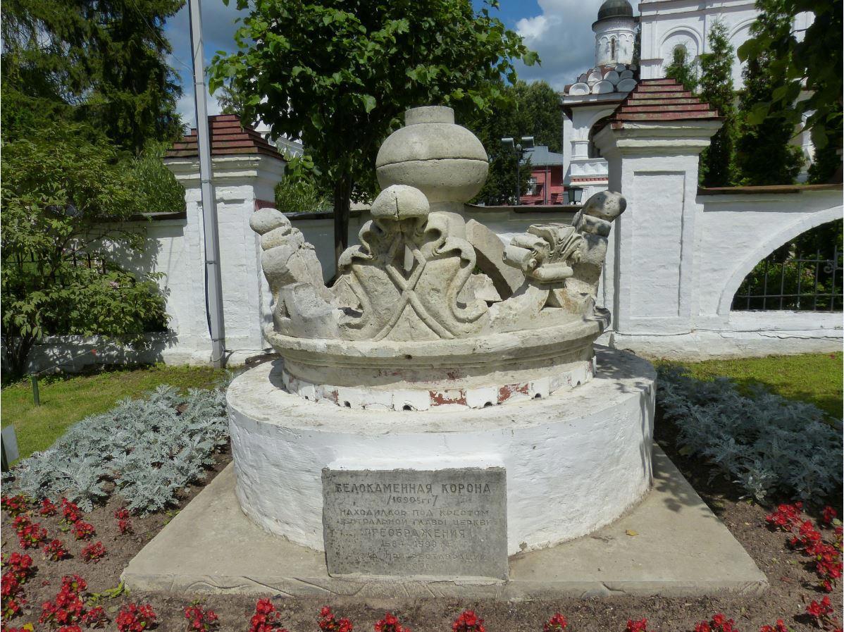 Центральную главу церкви когда-то украшала эта белокаменная корона. При реставрации возвращать её на прежнее место не решились.