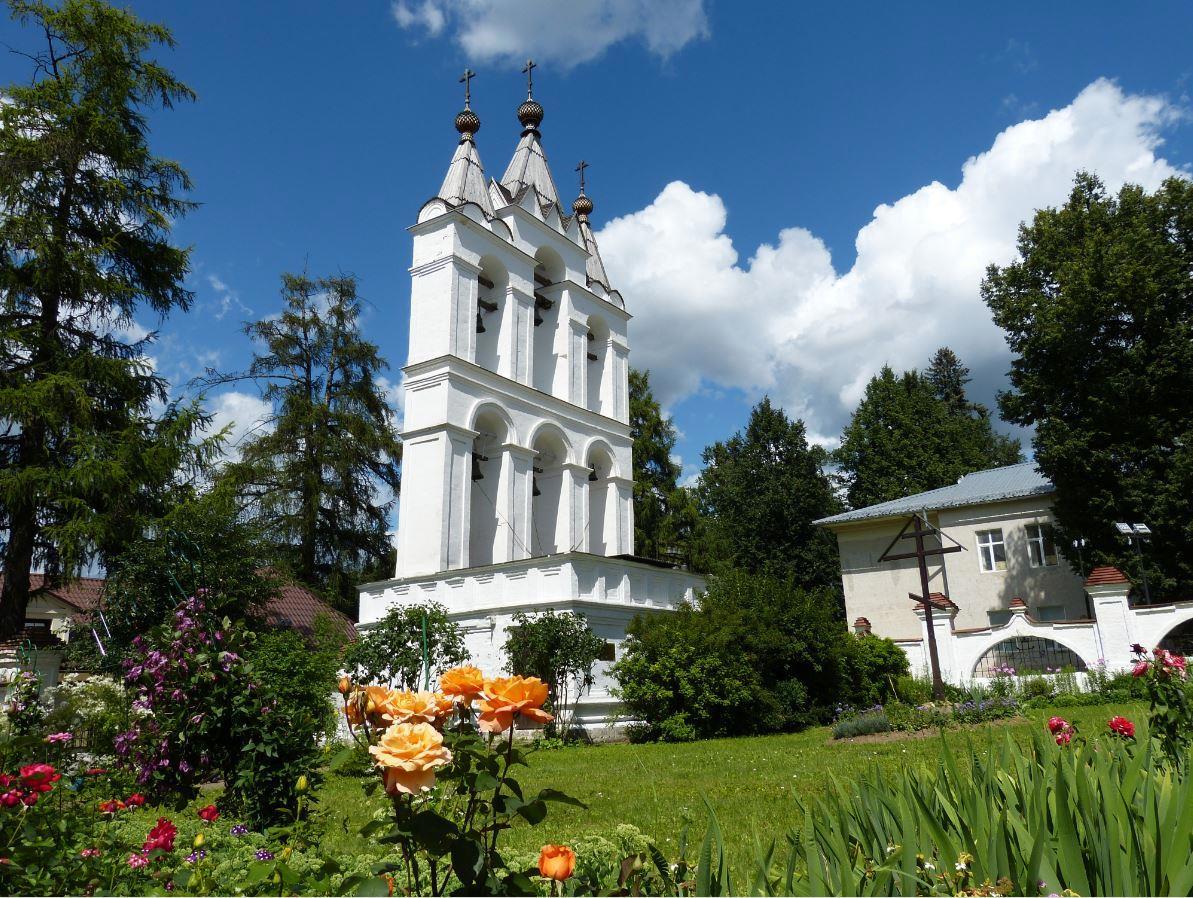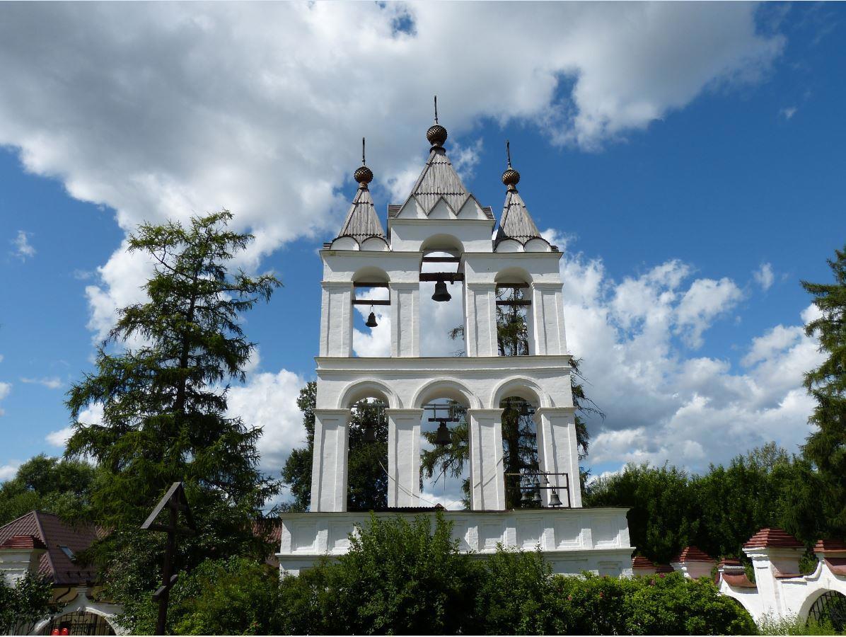 Чуть в стороне от храма стоит звонница XVI века очень редкой конструкции.
