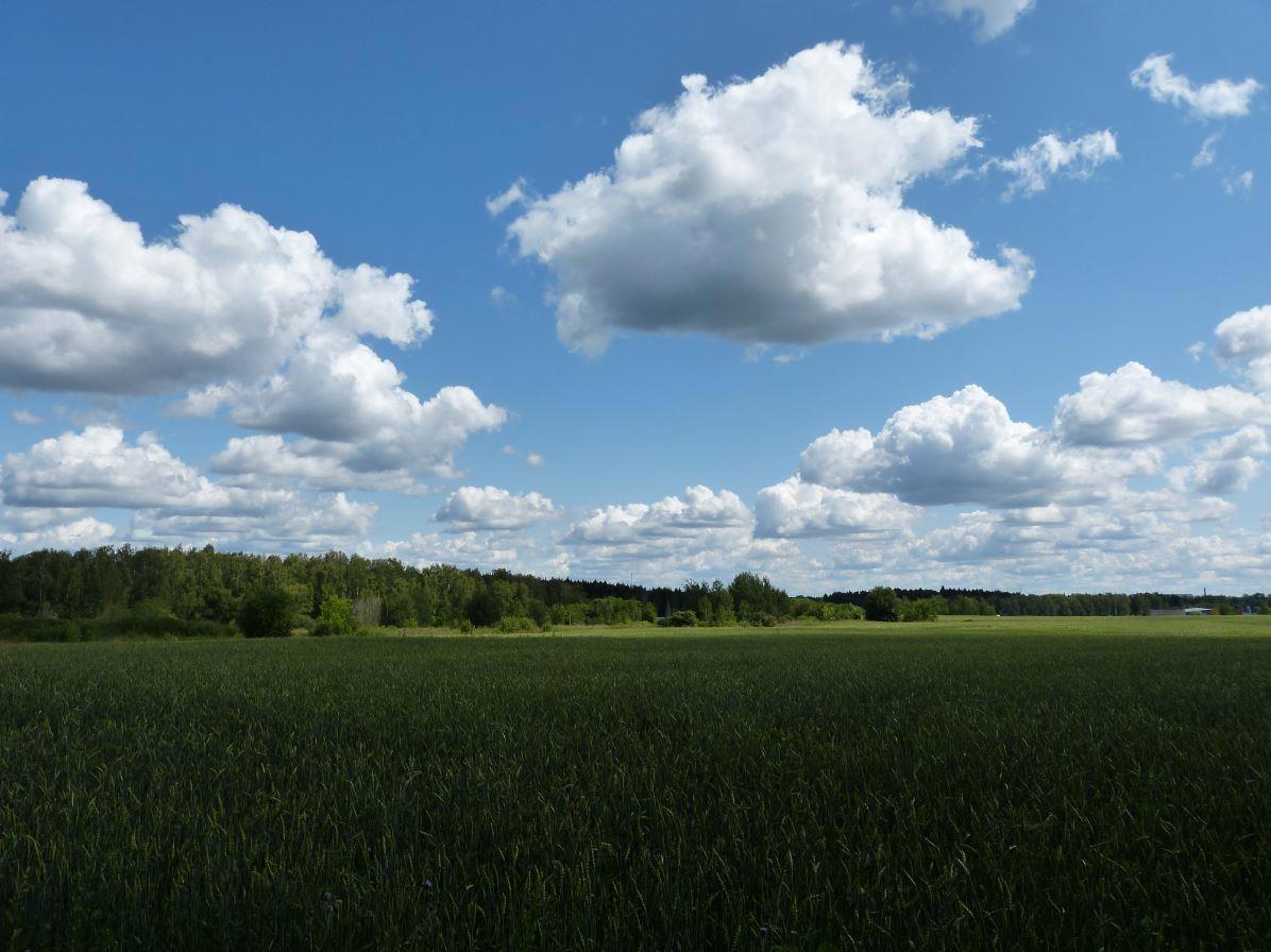 Дорога от Захарово в южном направлении вдоль поля ещё ничего, если не обращать внимания на современные постройки вдали. Но никакой навигации, никаких упоминаний о "Пушкинской тропе" там сейчас нет.