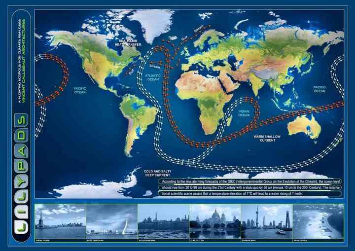 Он предложил эту модель в качестве долгосрочного решения проблемы повышения уровня воды в соответствии с прогнозом GIEC (Межправительственной группы по эволюции климата).