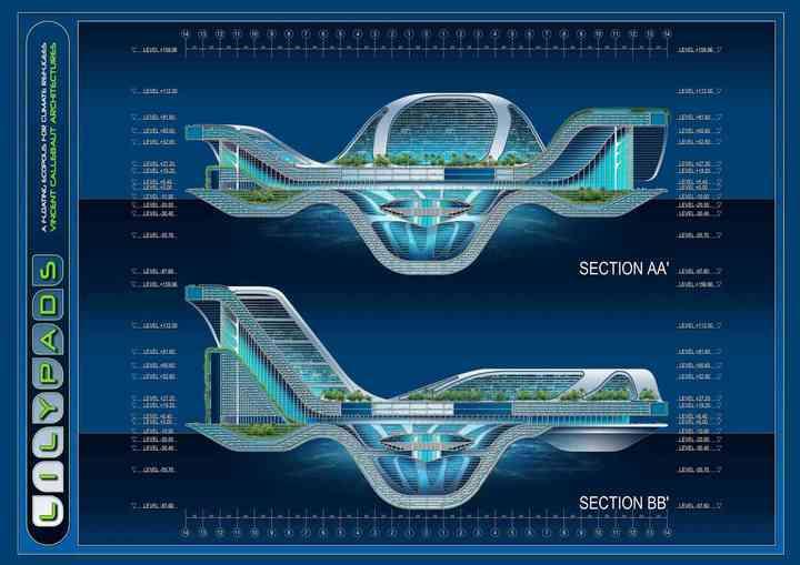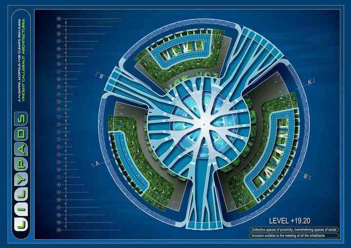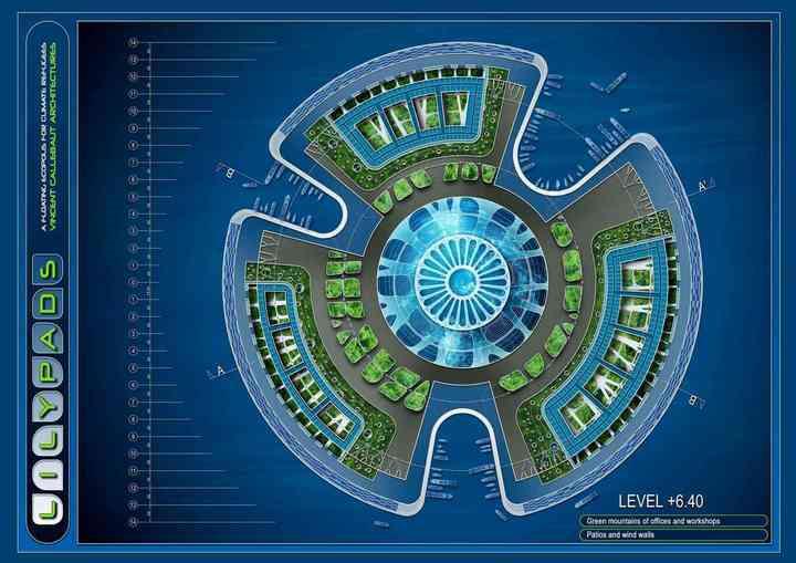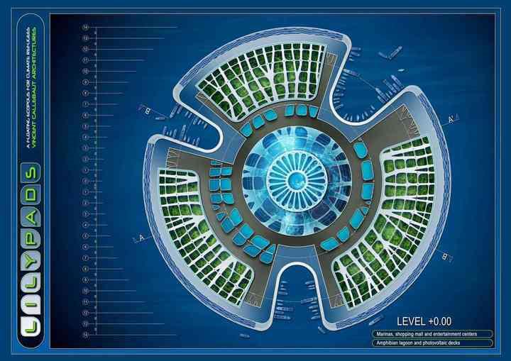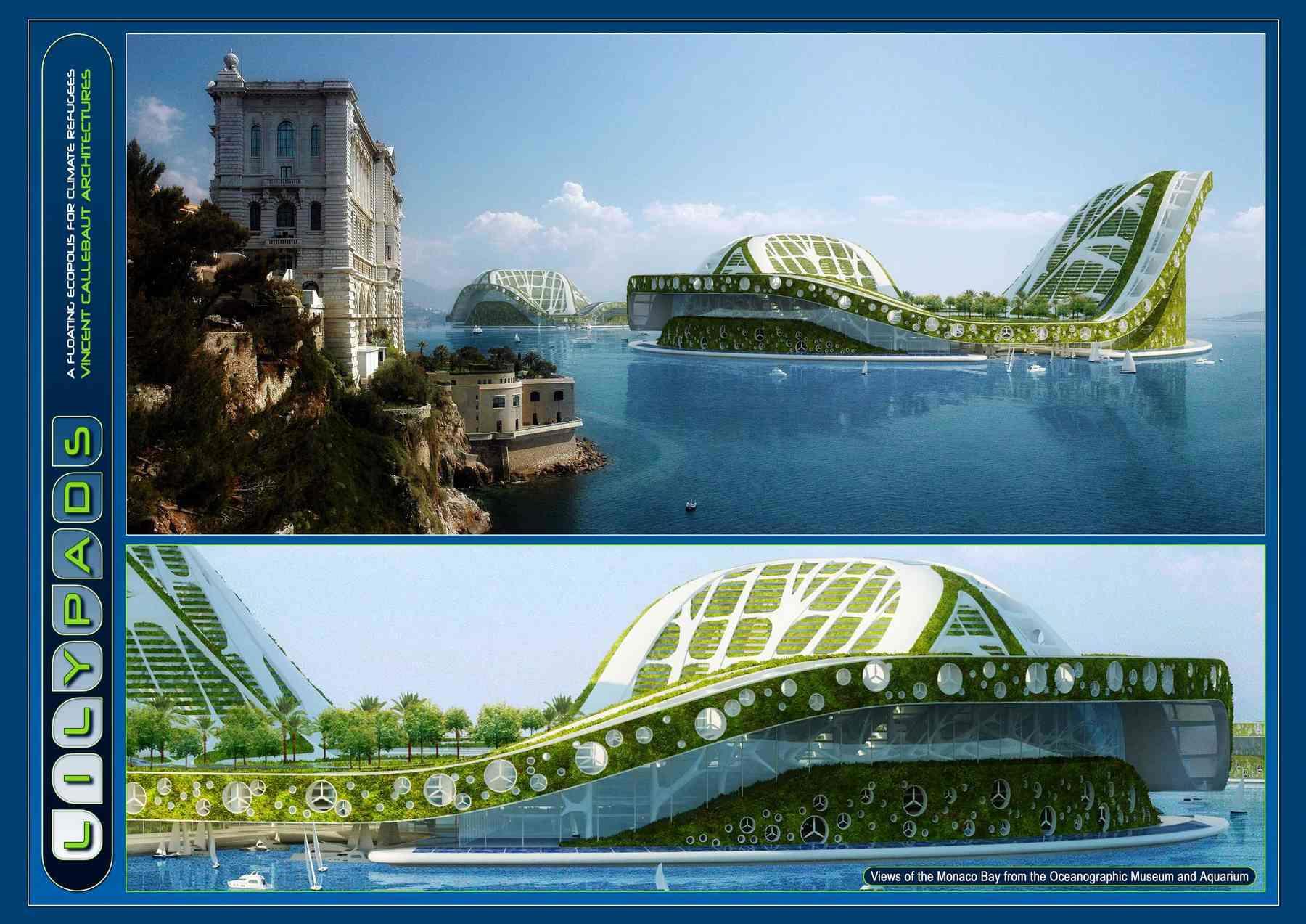 Плавучий экополис, иначе известный как Lilypad, представляет собой модель, разработанную бельгийским архитектором Винсентом Каллебо для будущих климатических беженцев.