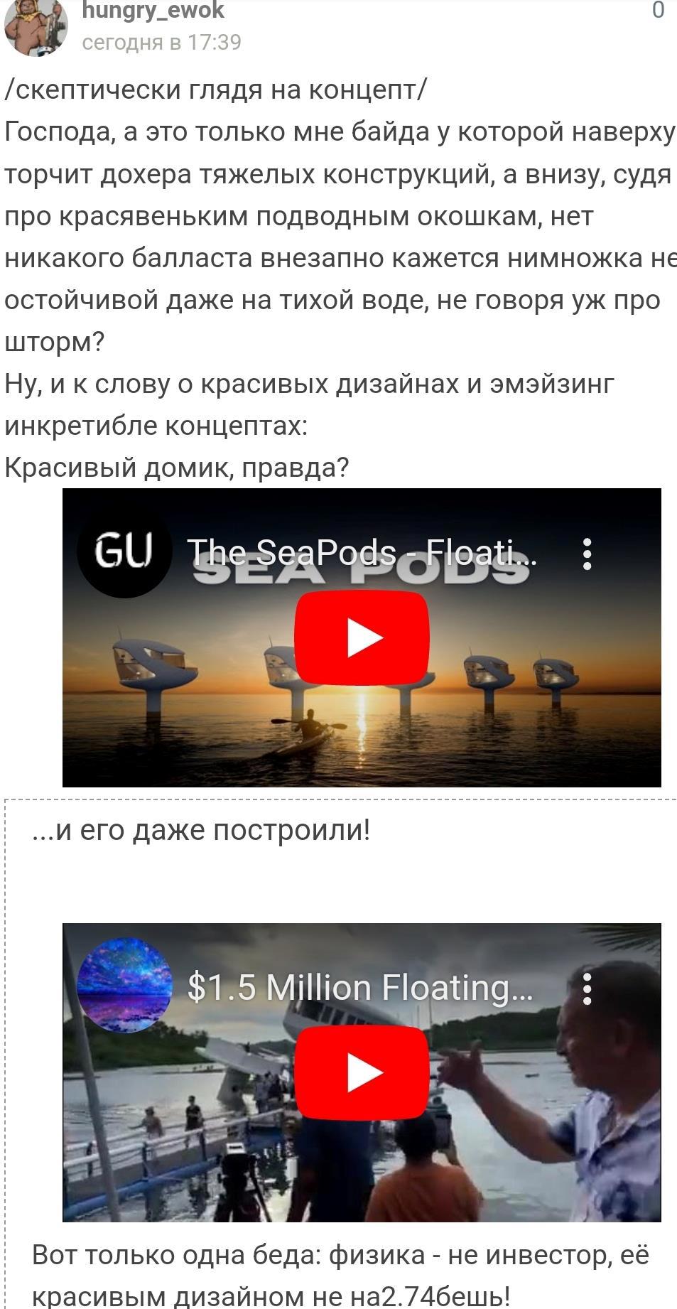 Еще в 70-е в Технике молодежи рассказывали о плавающих городах. О том, что их можно по желанию, отбуксировать в воды любой страны. Перуанские индейцы веками строят плавающие острова https://www.tourister.ru/responses/id_15997 А это какой-то новый прожект)))
