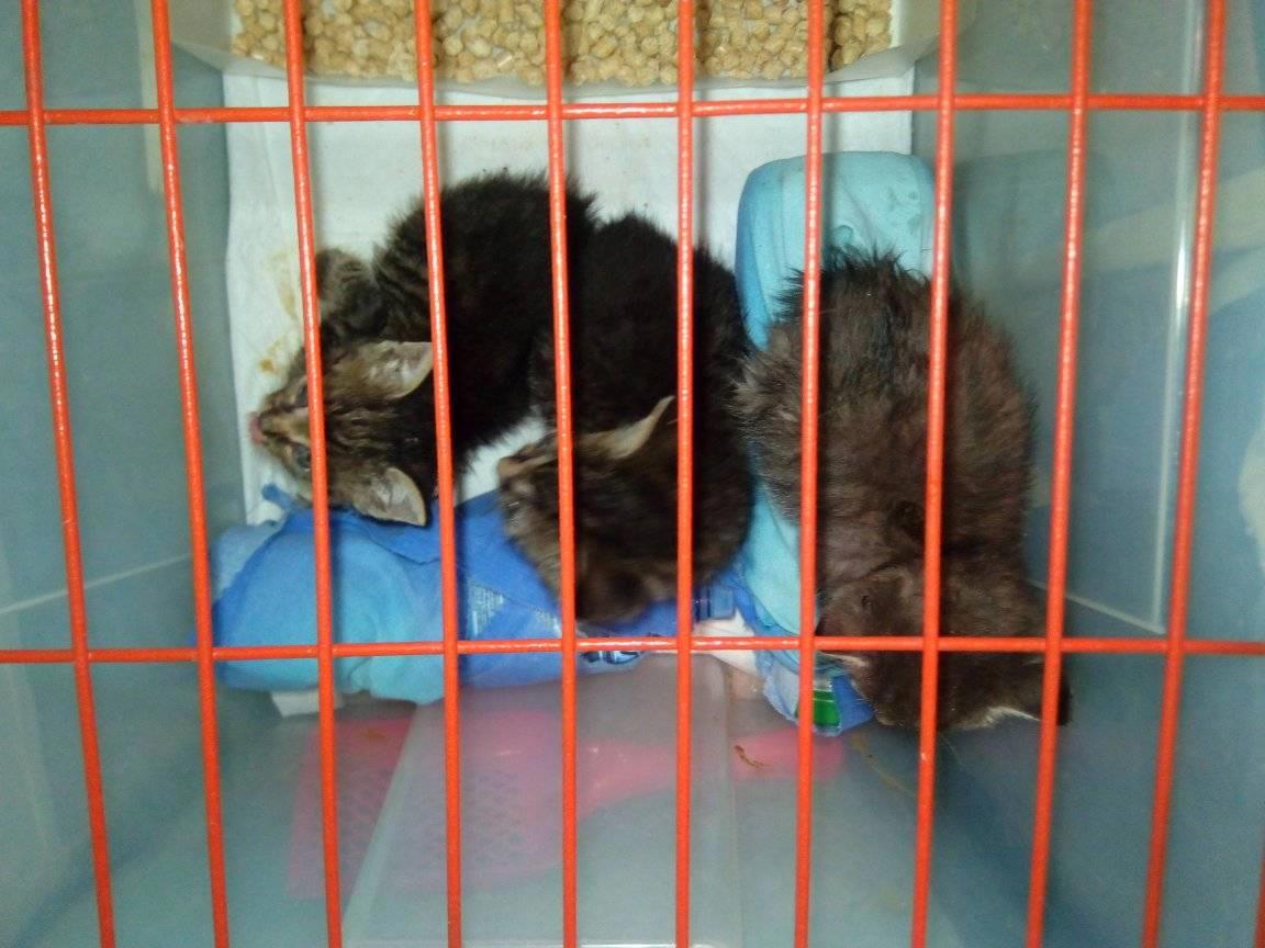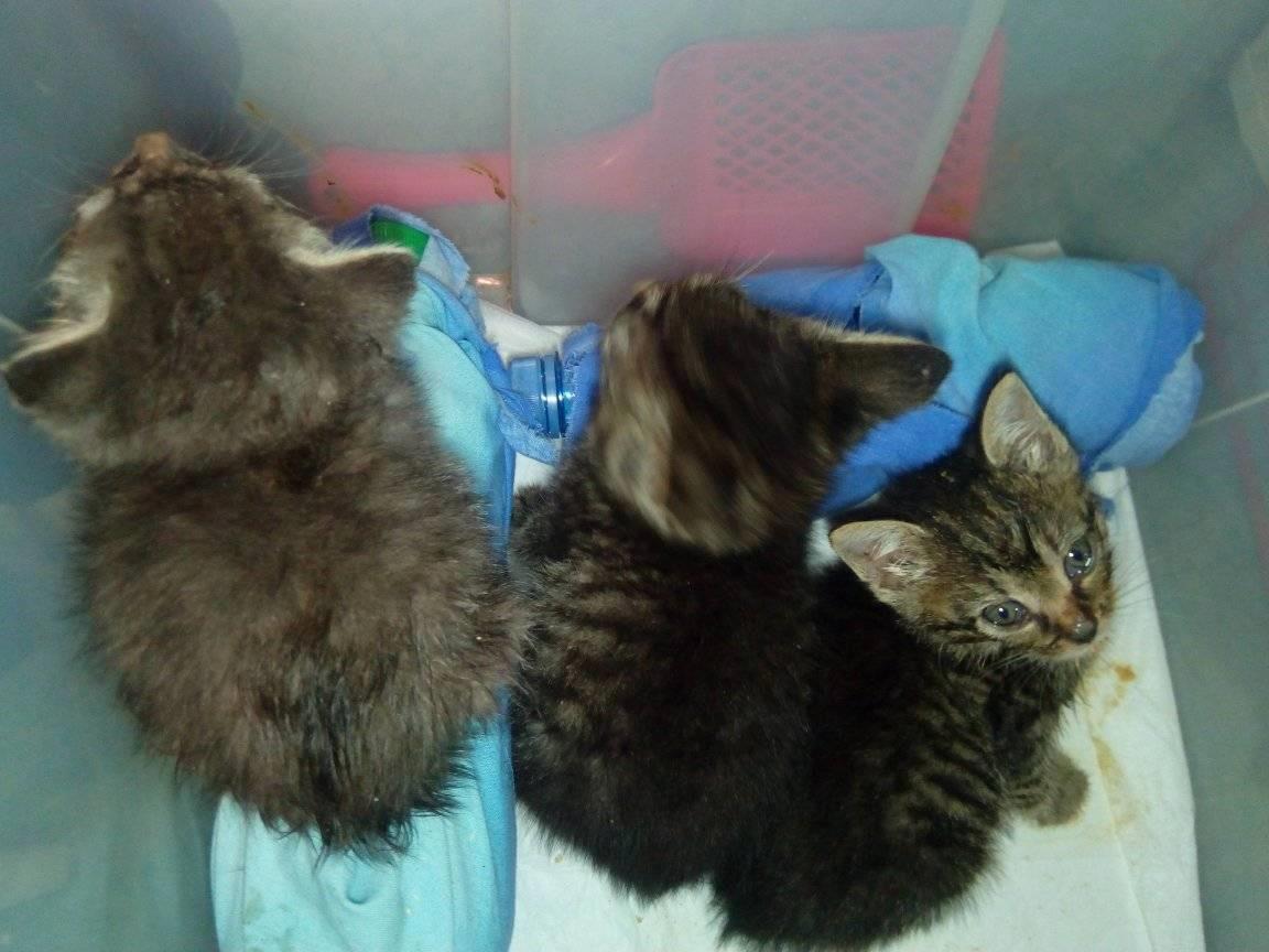 Автор: Екатерина КиннпристройствеИтак, трое котят, подобранных в начале грозы у подъезда - Темный, Полосатый и Дымчатая. Были у ветеринара, у них взяли анализы на панлейкопению и ринотрахеит, капнули "Стронгхолд" от блох, клещей, глистов и прочих паразитов (и те ссыпались с них). Пока они весят соответственно 360, 340 и 320 грамм. Когда дорастут до полукилограмма, сдадим анализы на ВИК и ВЛК. До тех пор сидят у меня в ванной в карантине.