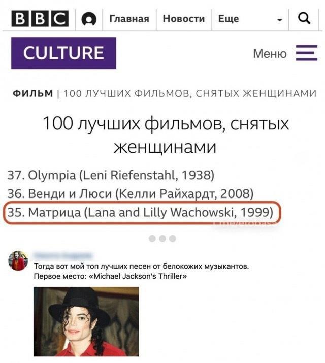 "Матрица" попала в 100 лучших фильмов, снятых женщинами :))