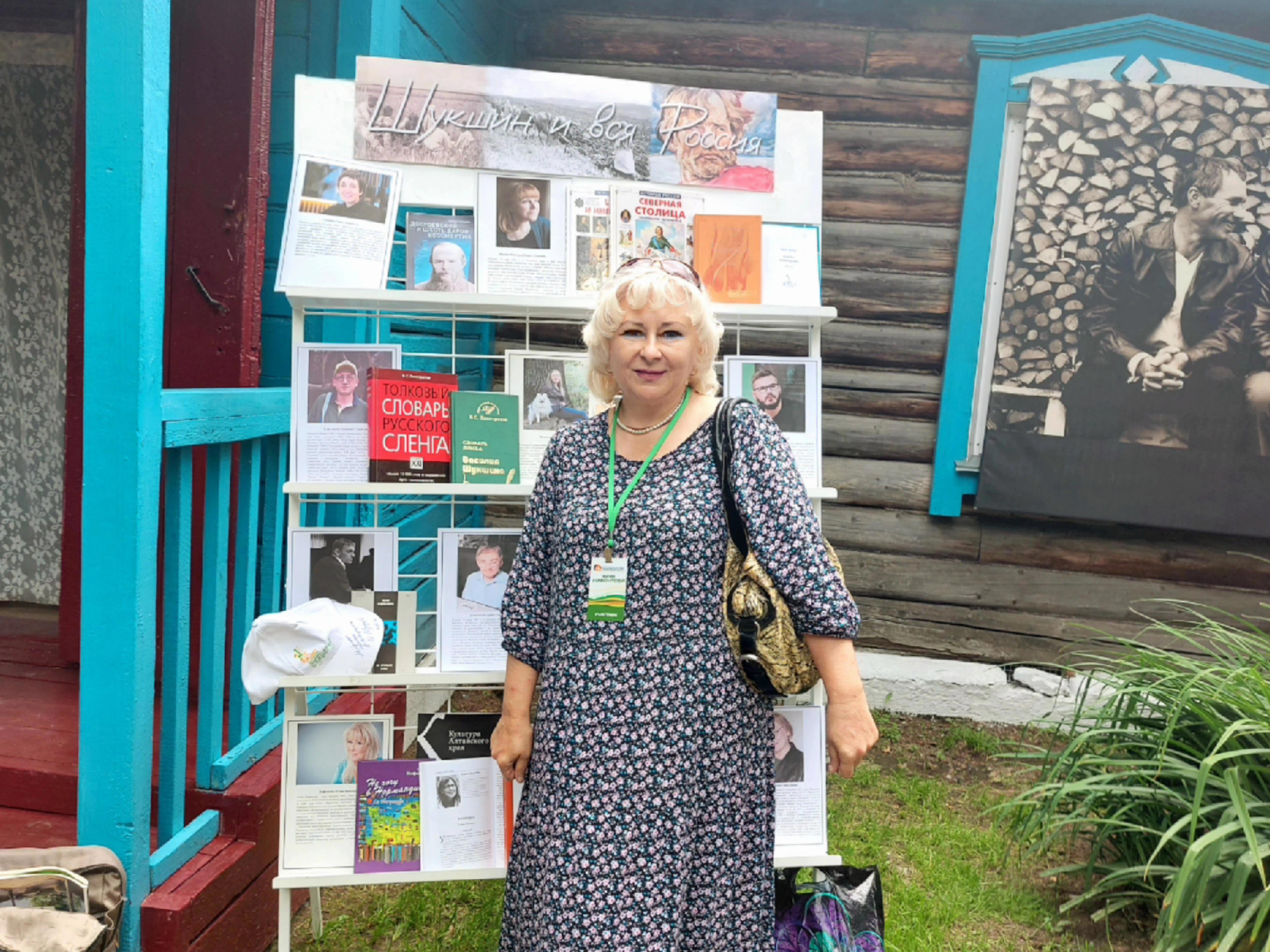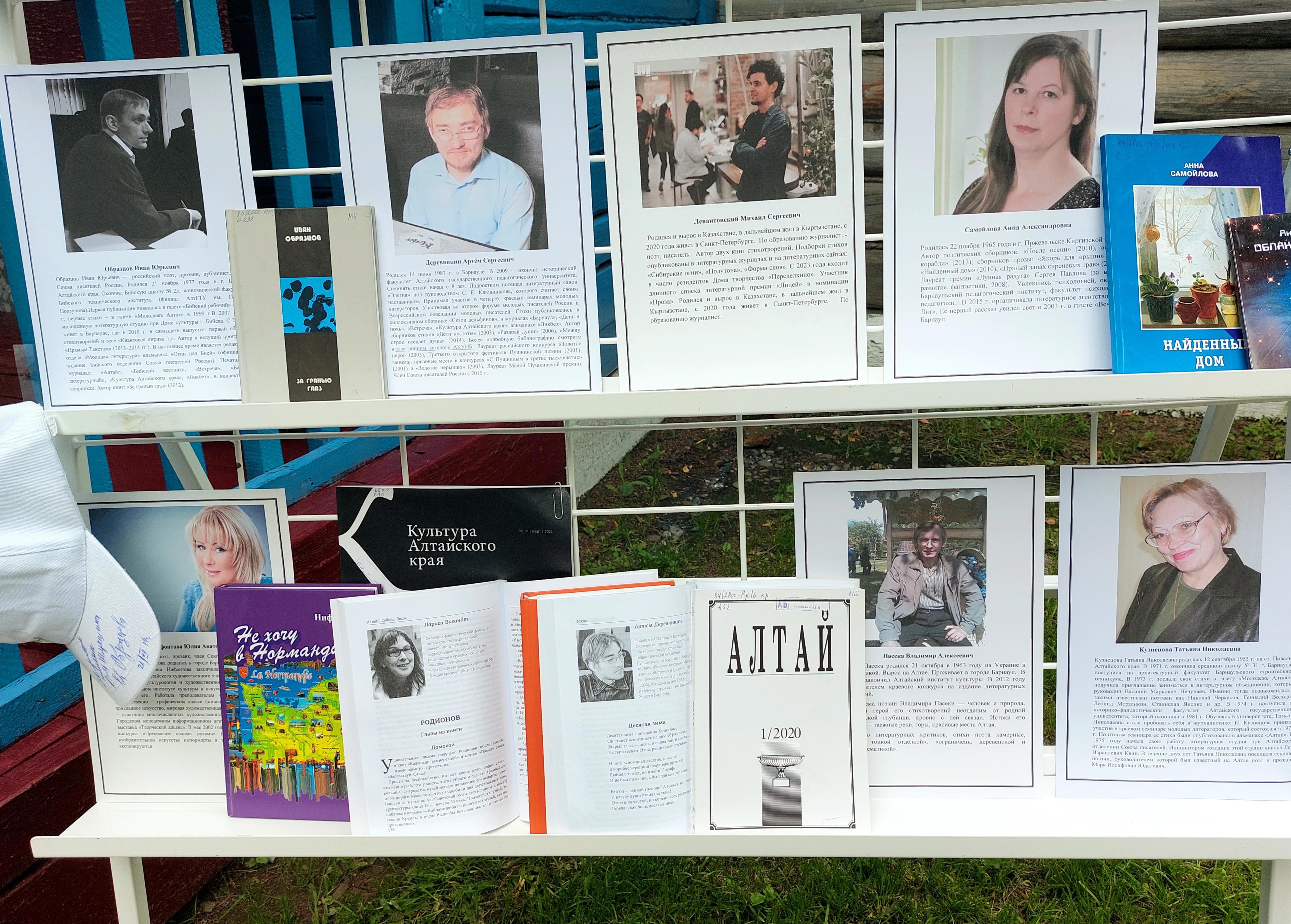 Было невероятно приятно увидеть на подступе к зелёной "эстраде" целый стенд с нашими книгами и фотографиями авторов - участников официальной писательской делегации "Шукшинских дней на Алтае"!