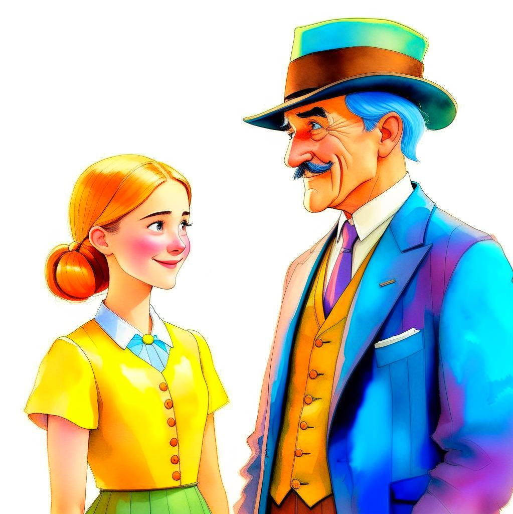 Обернувшись, она увидела серьёзного крепыша ростом чуть выше её самой. Одет как джентльмен: в синей «тройке» и белоснежной рубашке, на голове симпатичный синий котелок, а в руке зонтик-тросточка.