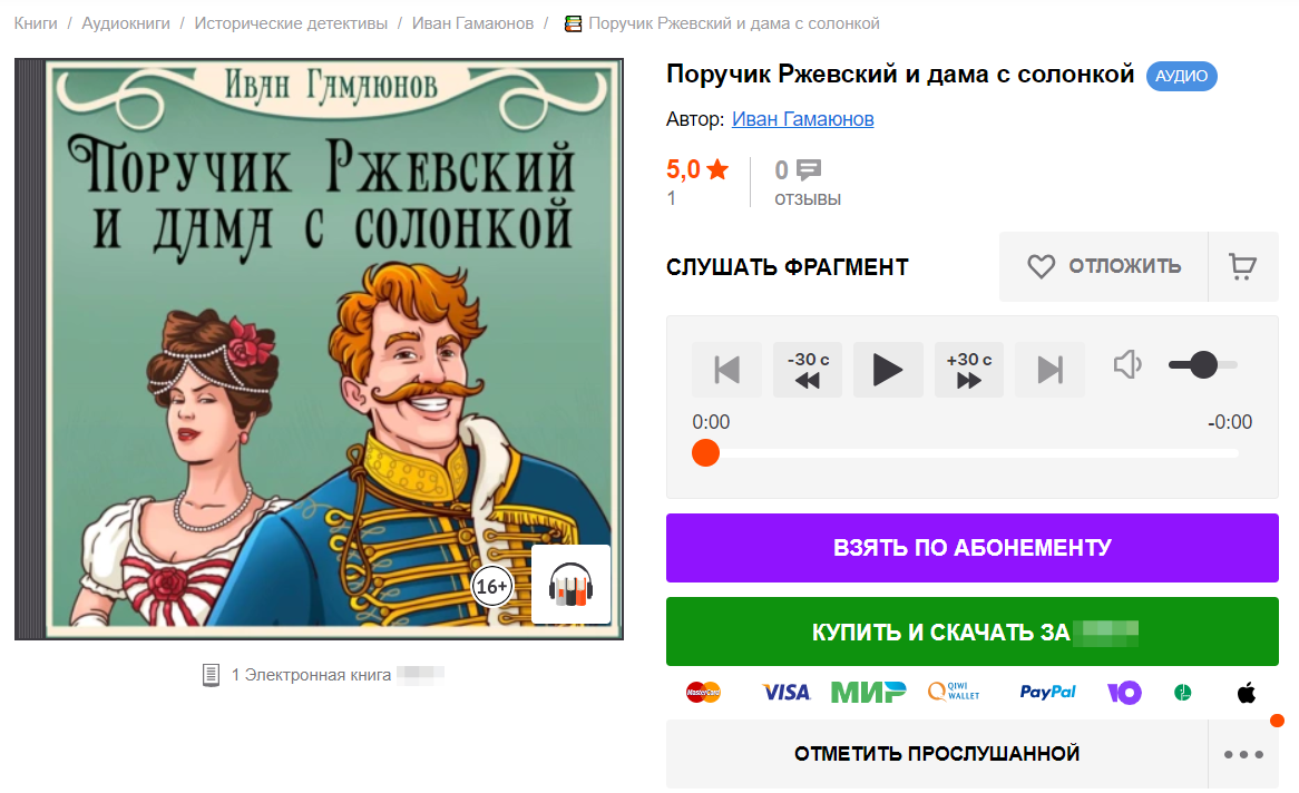 Автор: Иван ГамаюновХочу похвастаться. Мою книгу "Поручик Ржевский и дама с солонкой" озвучил чтец. Не программа, а живой чтец! И даже не энтузиаст-любитель, а профи!