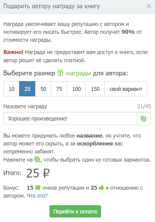 Справа от неё как раз кнопочка "Наградить". Можно кликнуть, и...