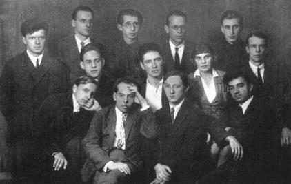 Студенты Московской консерватории — члены ПРОКОЛЛа. Первый ряд (слева направо): М. В. Коваль, Д. А. Рабинович, В. А. Белый, Д. Гачев; второй ряд: Ю. В. Келдыш, Л. Н. Лебединский, С. А. Крылова, Л. Н. Калтат; третий ряд: А. А. Давиденко, А. А. Соловцов, С. И. Корев, Н. Я. Выгодский, Б. С. Штейнпресс.