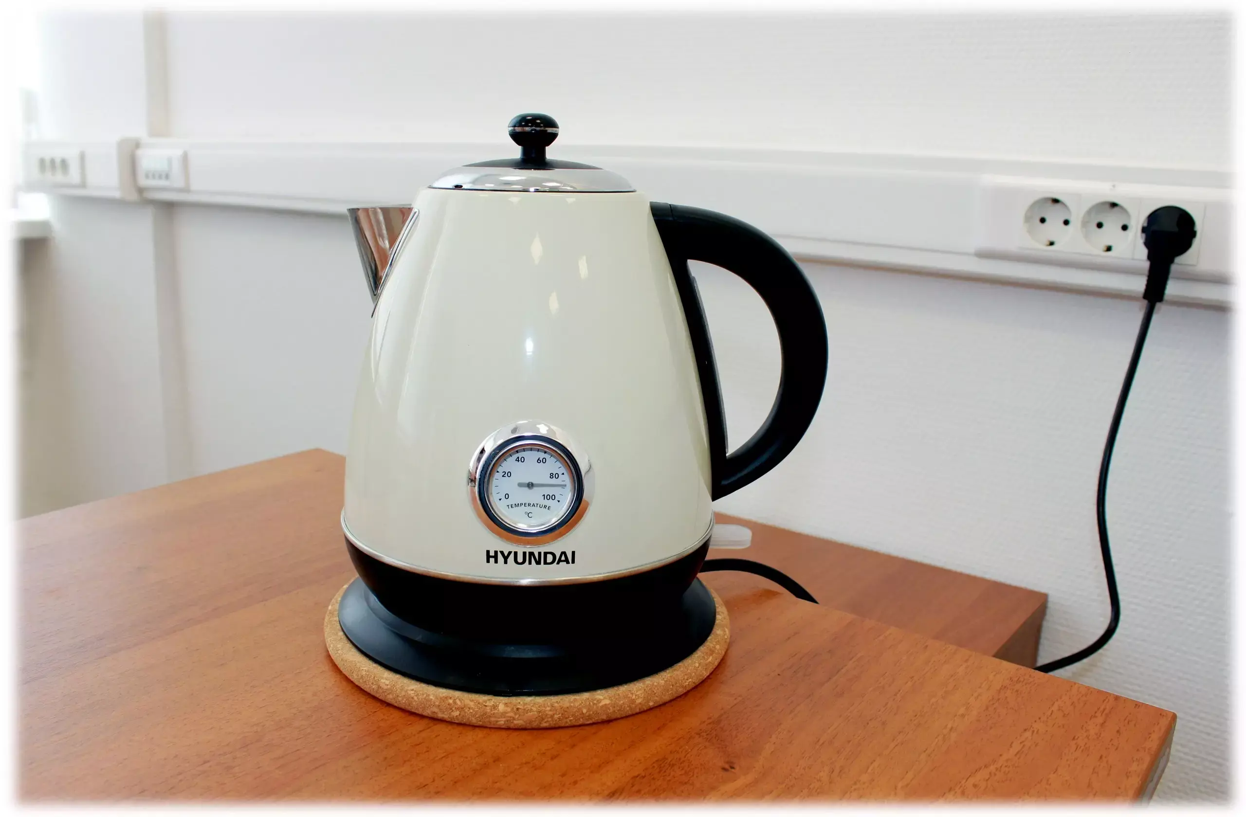 Да, пробковая подставка это уже так, выпендрёж, ненужный фетиш. На самом деле его основание не позволяет чайнику прогреть стол. Там большой воздушный зазор.