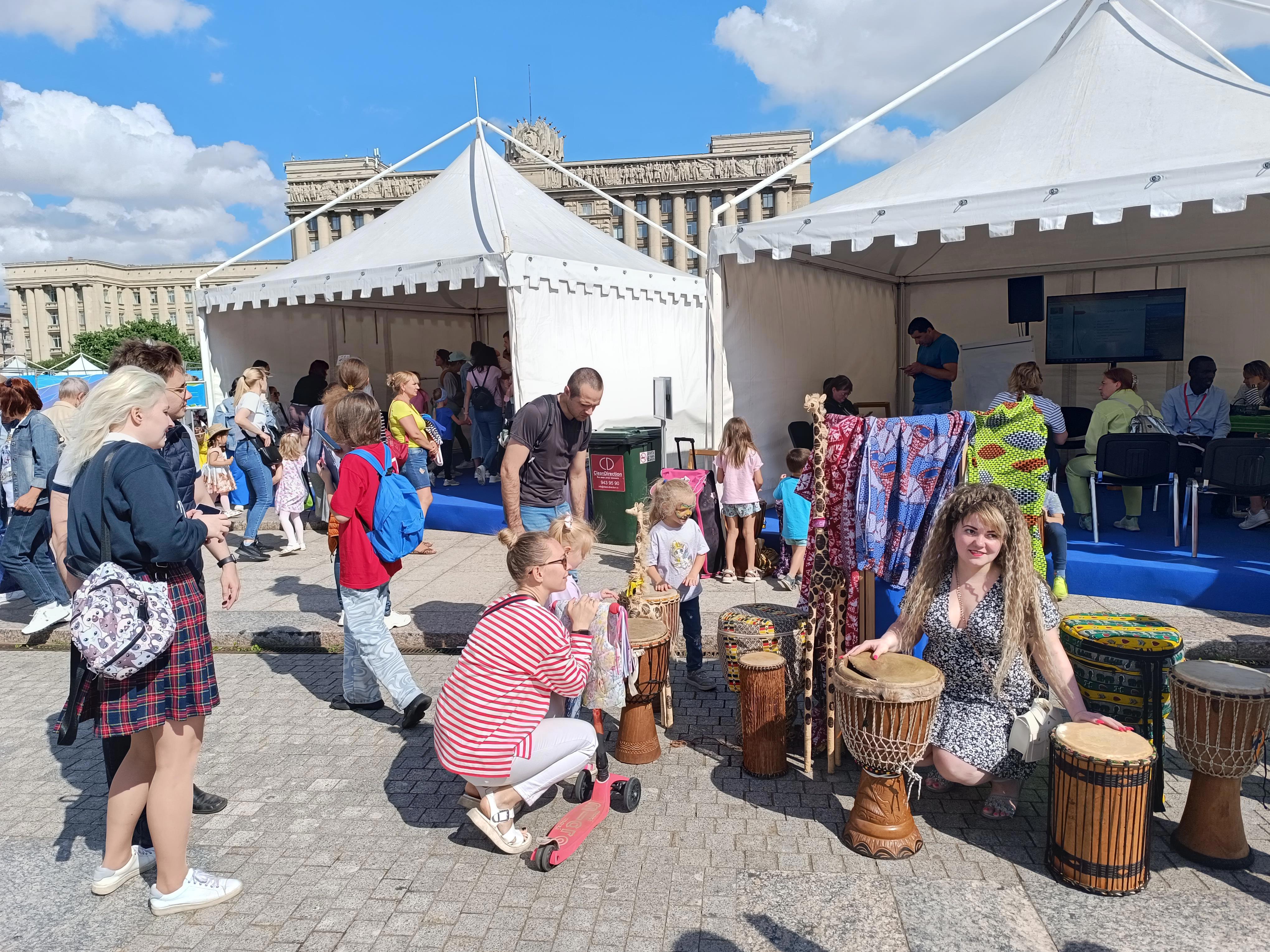 Автор: Людмила СеменоваСегодня мы побывали на фестивале "Ритмы Африки" на Московской площади, приуроченном к закрытию саммита. Впечатления весьма двоякие: он получился очень камерным, и разнообразию африканской культуры не удалось развернуться во всю ширь - за этим, конечно, лучше идти в "Манеж", о чем я писала в прошлый раз. Но доброжелательная и оптимистичная атмосфера, солнечный день и радуга, играющая в фонтанах, сами по себе способны добавить антуража и настроения.