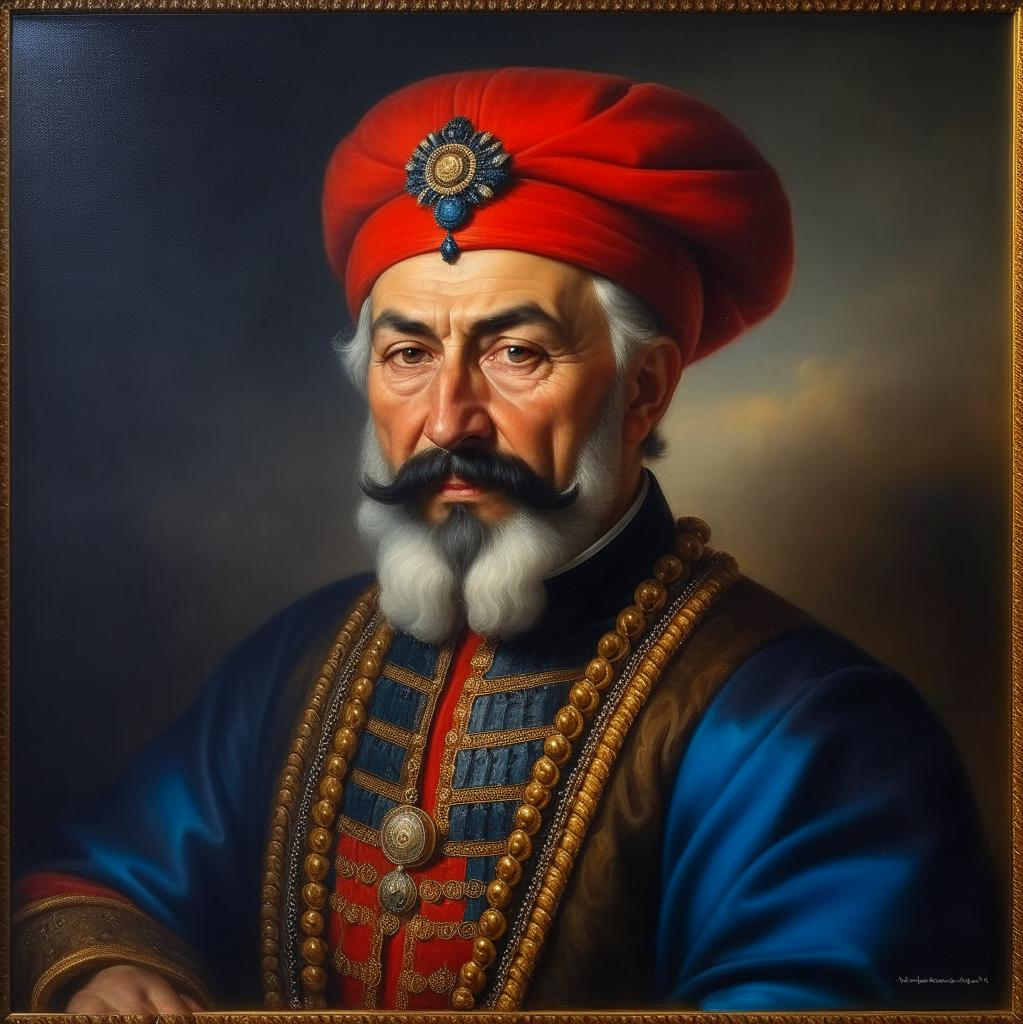 Автор: Елена ГореликВот так нейросеть представляет себе одного из тех, кто отговорил султана влезать в войну против России... по итогам южной кампании Петра :)