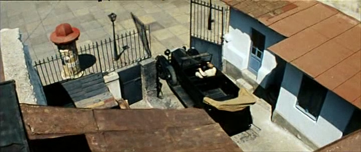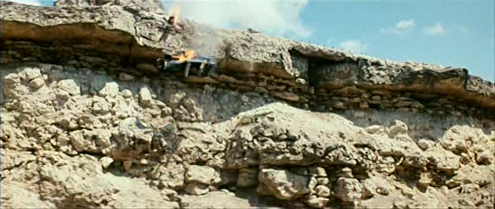 В кадре с машиной престижной английской марки особо не церемонятся — она таранит ворота, насквозь проезжает аптеку, в то время как по кузову якобы беспрестанно палят из пистолетов. Все трюки проделывались с реальным автомобилем, но во время съемок он не пострадал (спасибо бутафории).