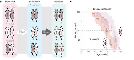 они пришили (в буквальном смысле!) к старой мыши молодую мышь, объединив их кровотоки.