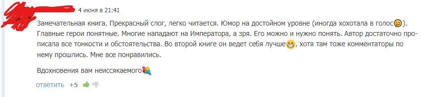 Комментарии не тру даже если они в стиле "хорошая книга, но у Васи лучше". Всем отвечаю, хотя бы смайликом (и смайликом на смайлик). Критика сильнее меня, нокаутирует почти всегда, это да, но критика сама по себе не помешает мне писать. Мне мешает писать работа за зарплату