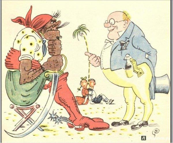 Пусть Добужинский персонажу и отец родной, но с обликом Айболита – не угадал. Такое бывает. А вот с Бармалеем, напротив – угадал. В тексте сказки нигде не упоминается, что Бармалей – пират, у Чуковского он всего лишь людоед (да, да, каннибал, Чуковский вообще очень добрый детский писатель) и разбойник. Но Добужинский почему-то изобразил его пиратом, и вот уже почти столетие «кровожадный и беспощадный» не снимает униформы морских разбойников. Пришлось даже Чуковскому много позже, в прозаической версии «Доктора Айболита» как-то разъяснить пиратское происхождение знаменитого разбойника.