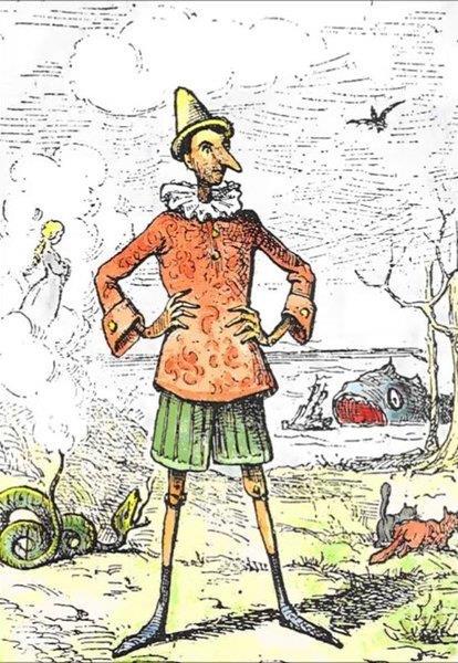 Возьмем, к примеру, Буратино. Алексей Толстой, как известно, не только вернул русской версии Пиноккио изначальное имя (книга Карло Коллоди сначала называлась «История буратино» (дословно – «деревянной куклы», то есть «марионетки») и лишь во второй, расширенной версии сказки марионетка обрела имя Пиноккио, то есть «сосновый орешек»), но и изрядно облегчил работу будущим иллюстраторам. Во-первых, к тому времени уже много лет как существовали классические иллюстрации к Пиноккио итальянского художника Мацанти,