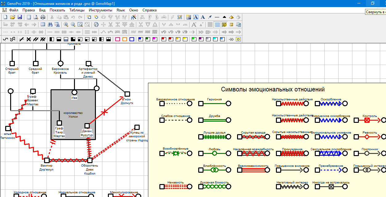 2) спец.программу "для родословных" GenoPro - прога покорила меня именно различными типами отношений - стрелки меж объектами можно рисовать как угодно