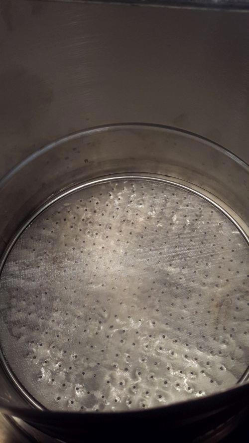 Котёл подогревает воду до нужной температуры, после этого в корзину засыпается солод. Дальше можно размешивать, а в конце затирания корзина вынимается и ставится на решётку. Дробина остаётся внутри, сусло стекает в бак.