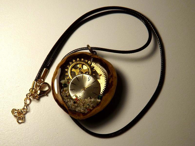 Эти кулоны сделаны из ювелирной смолы и разной мелочи вроде красивых камушков, гальки, раковин, скорлупы орехов, шестерней и прочего, прочего, прочего. Словно кармическое отражение любой художественной книги, где из обычных букв и слов собирается Путешествие, Приключение, Чувства и Эмоции. Свои творения Михаил... нет, у меня не поворачивается язык назвать это словом "продаёт". Скажем так, если вам что-нибудь очень понравится, то автор обычно соглашается переслать на условиях оплаты почтовых услуг плюс компенсации материалов. Не вышел, право слово, из "прапорщика Воровского" бизнесмен. Если понравилось, можно подписаться на фейсбук Михаила - там относительно регулярно появляются новые кулоны и другие украшения.