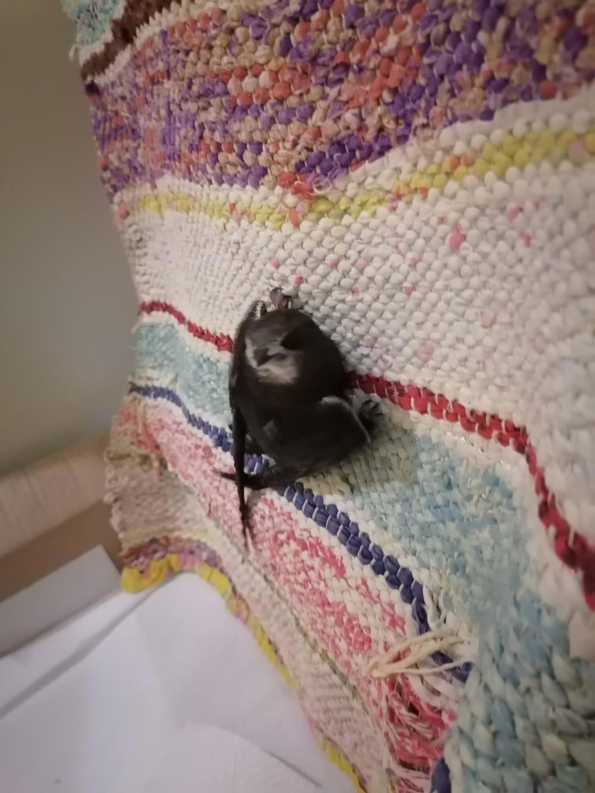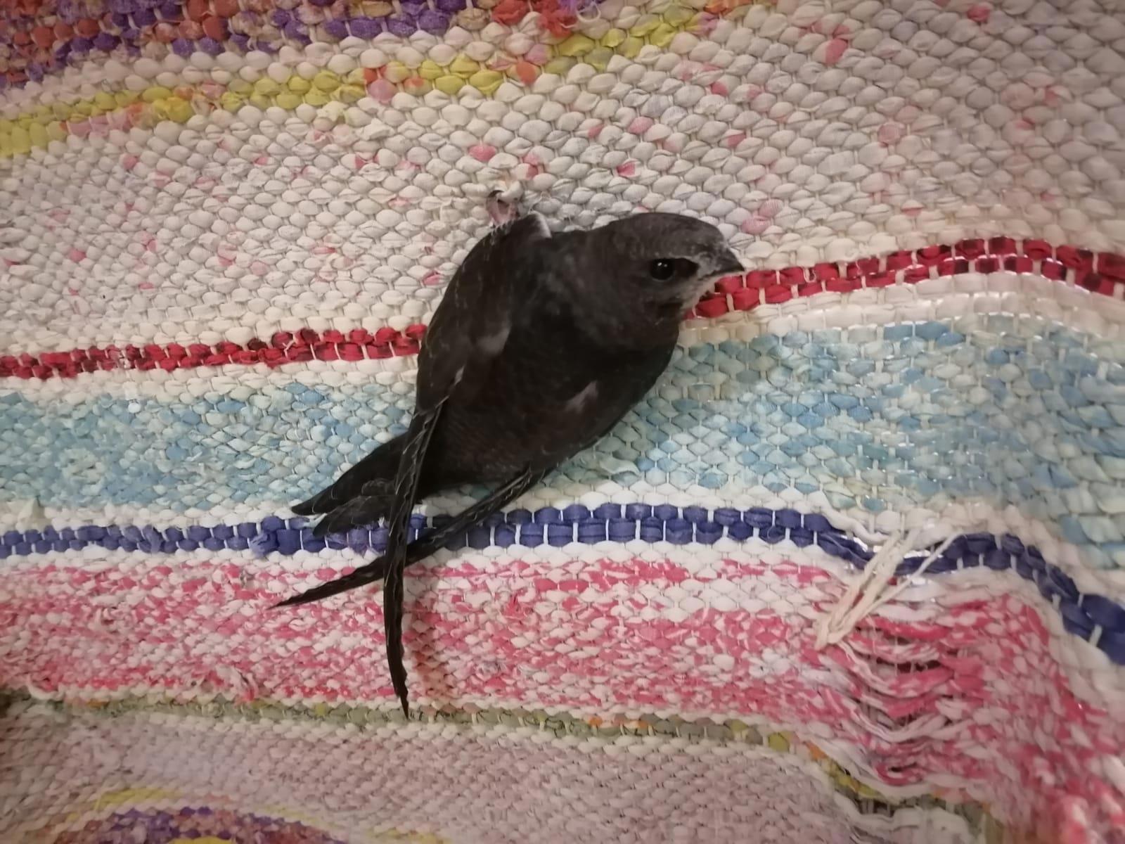 Это маленький стриж. Зовут Григорий, хотя, возможно, это и Григория. Мы его во дворе нашли, он из гнезда выпал.