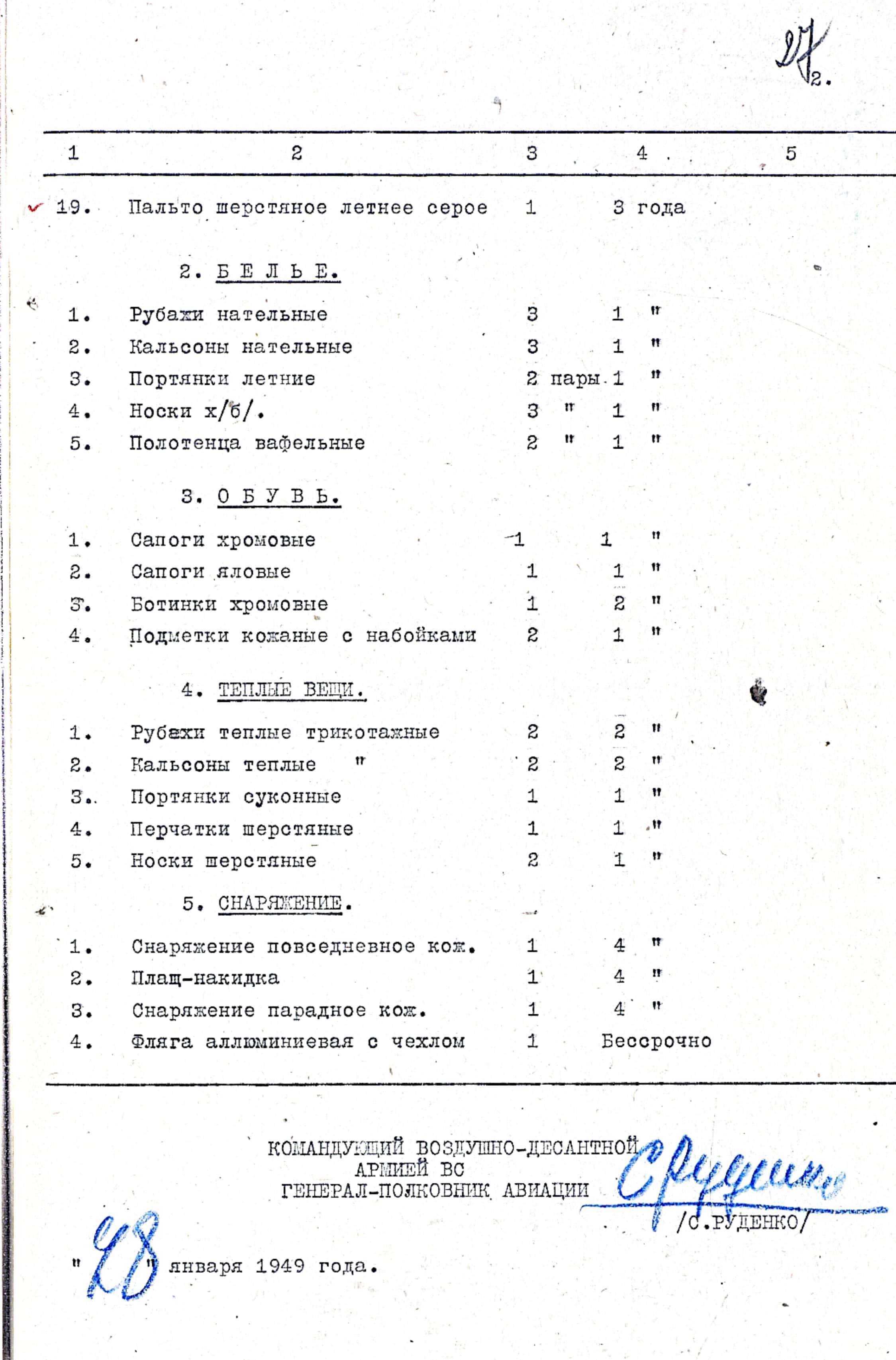 А резолюция - вот она: «Предметами обмундирования ВДВ будут обеспечиваться на общих основаниях с Сухопутными войсками и отдельной нормы для ВДВ разрабатывать не нужно, тем более, что все предметы общие как для сухопутных войск, так и для ВДВ. Заслуживает вопрос о конструкции сапог, о чём полковник (фамилия неразборчиво) извещён. 10.2. Ртищев.»