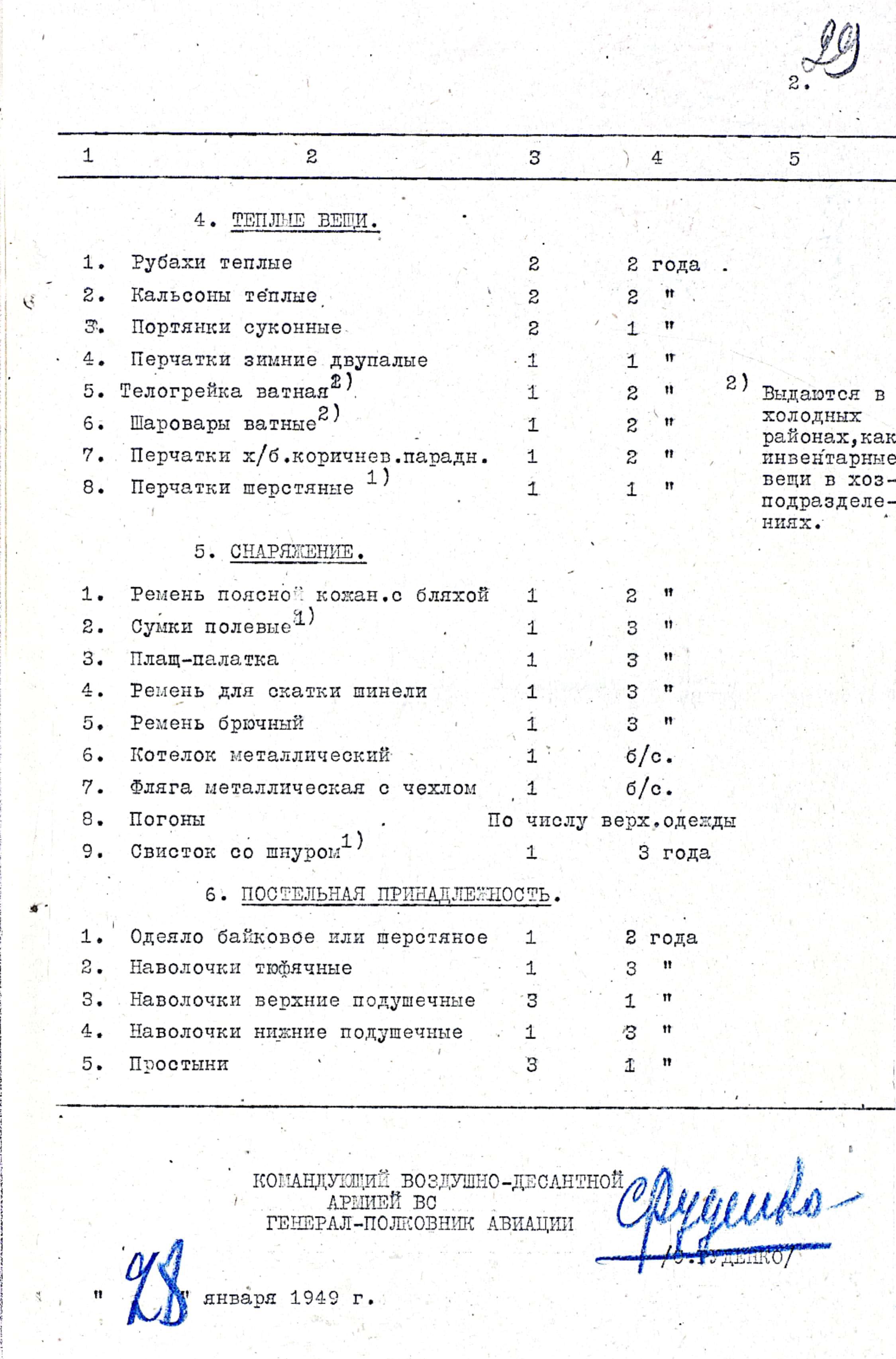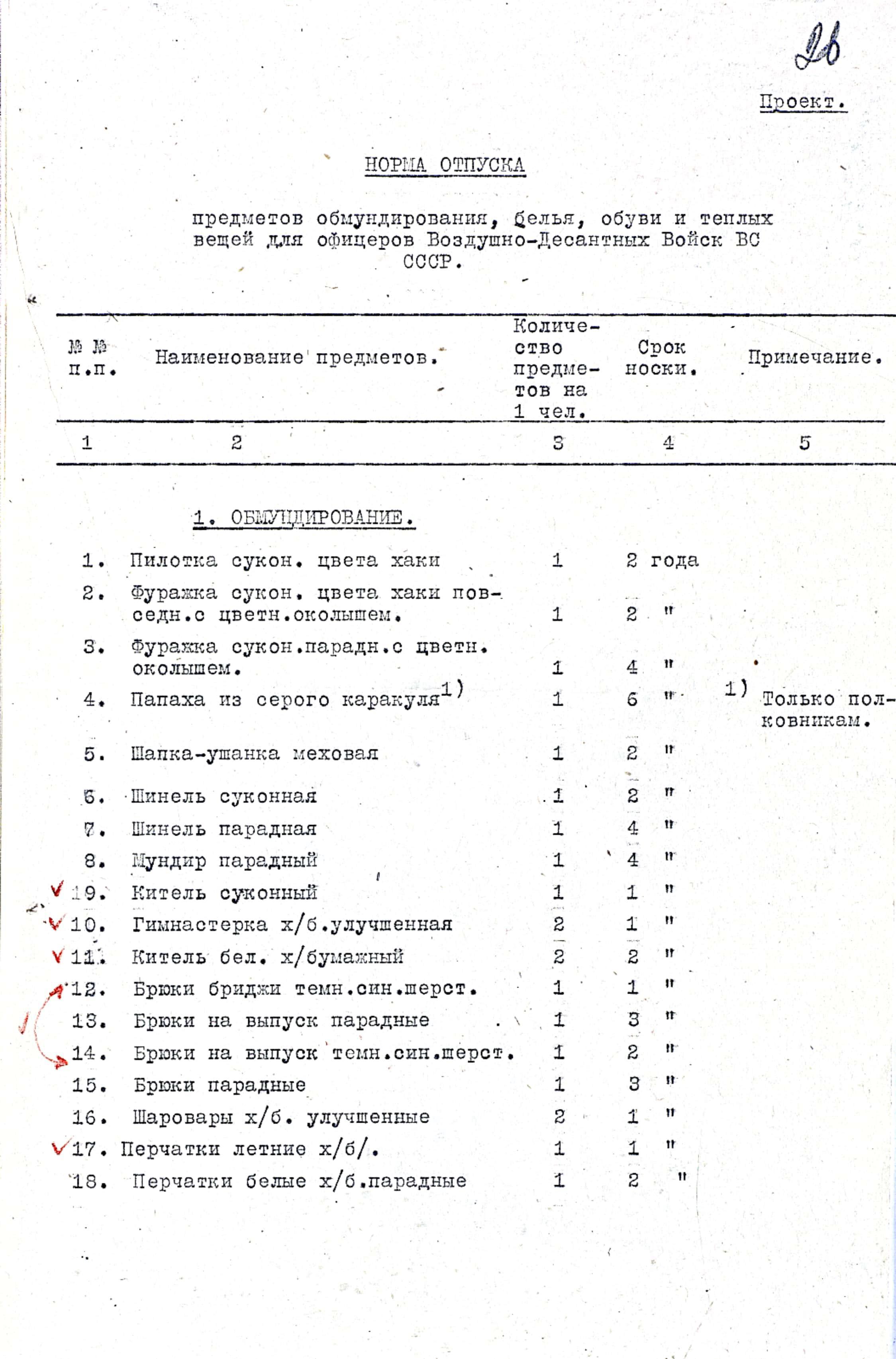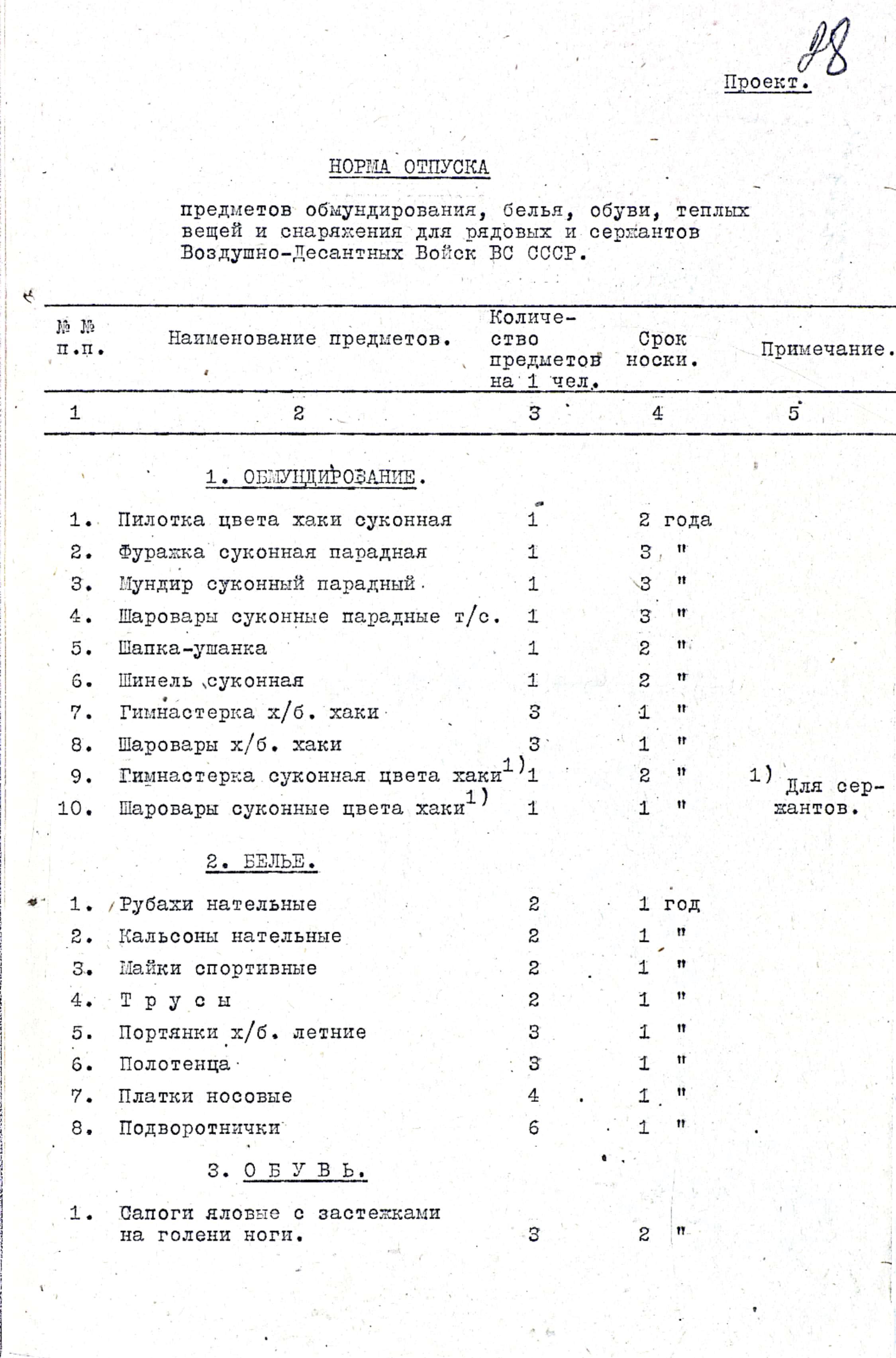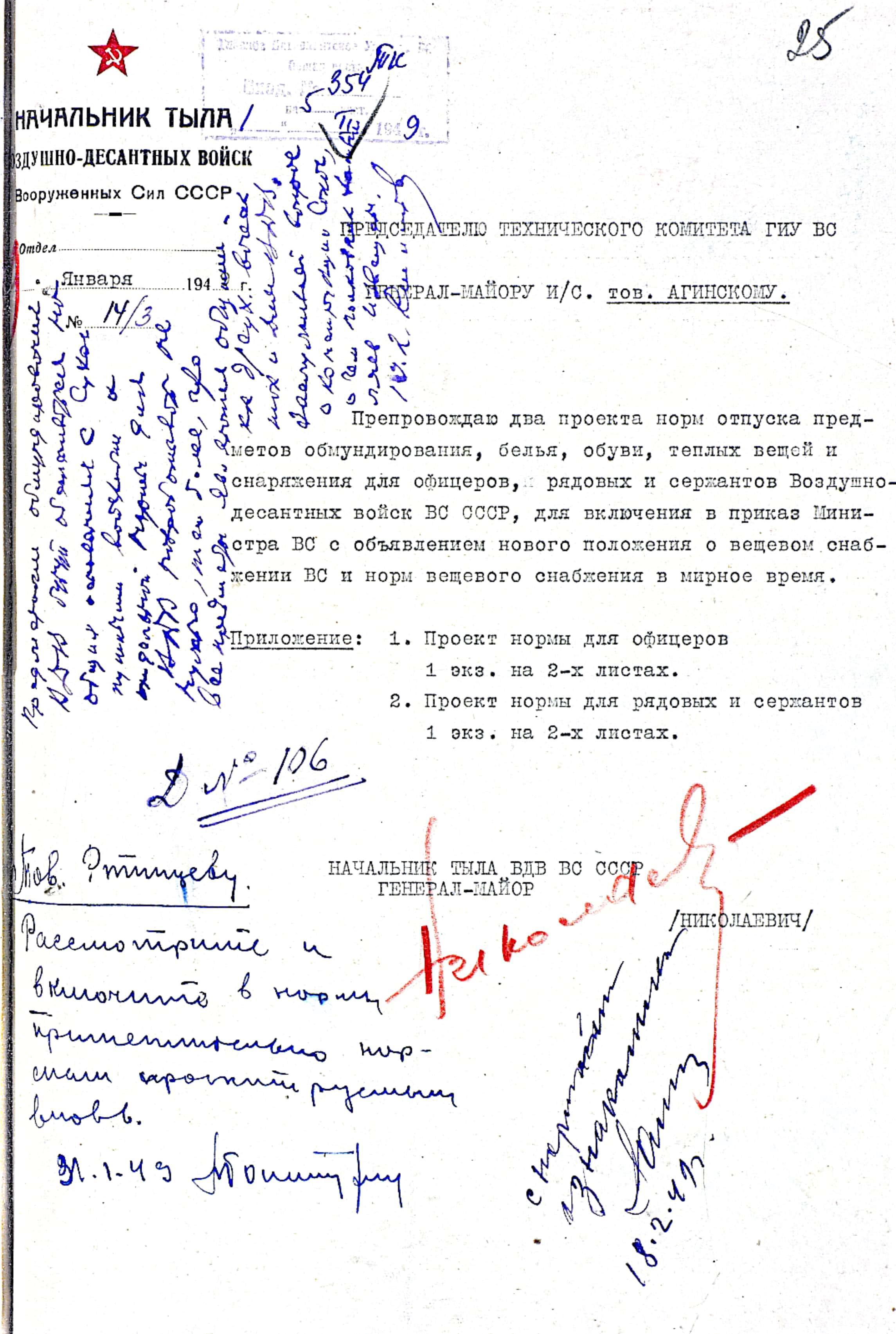 Но, предложения по совершенствованиям, изменениям, улучшения норм, Командованием ВДВ, выдвигались и раньше. Первое, найденное мной, официальное обращение датировано 1949 годом.