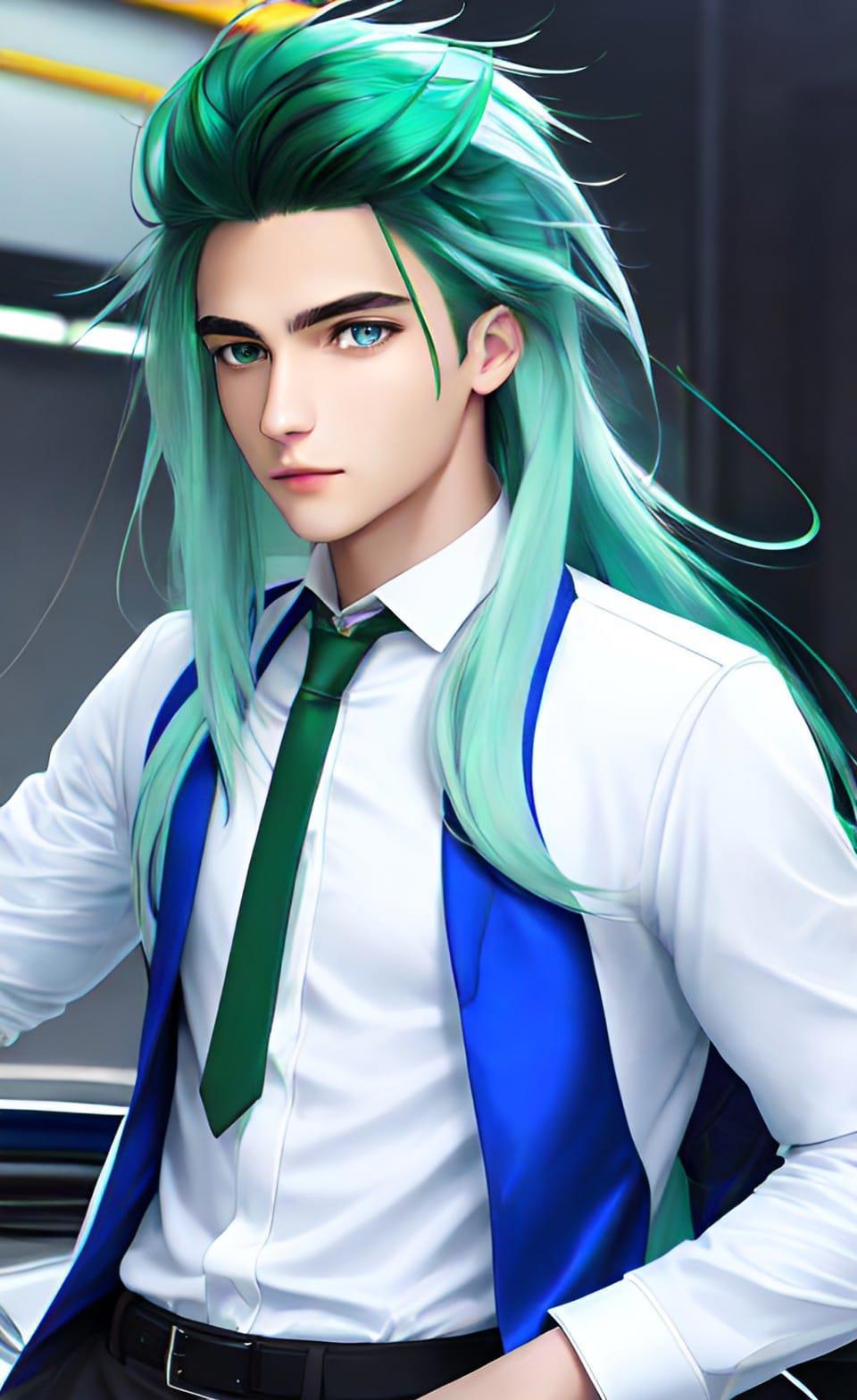 Распущенные волосы до плеч разного цвета, словно перья у птицы, синие и зеленые пряди вперемешку, а еще нереальные глаза разного цвета, синий и зеленый.