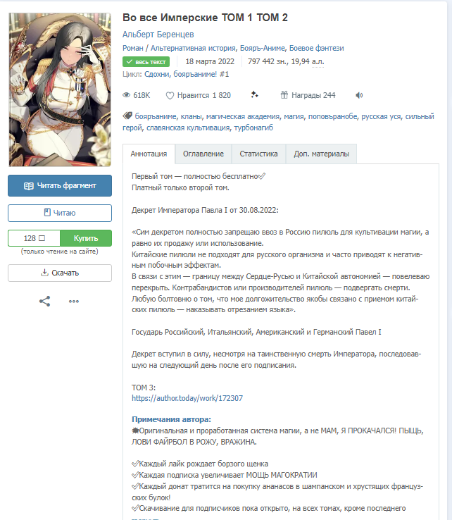 Внеочередной выпуск: https://author.today/post/283673