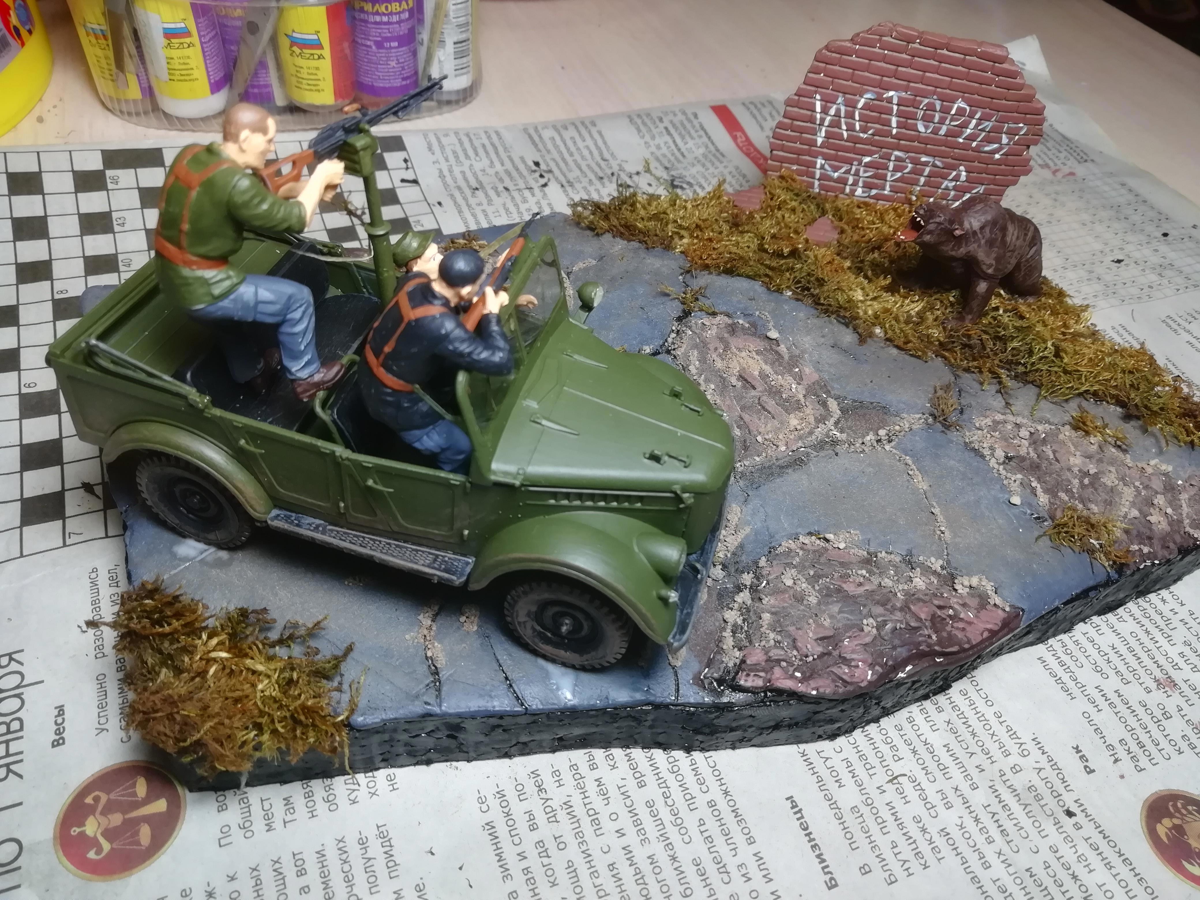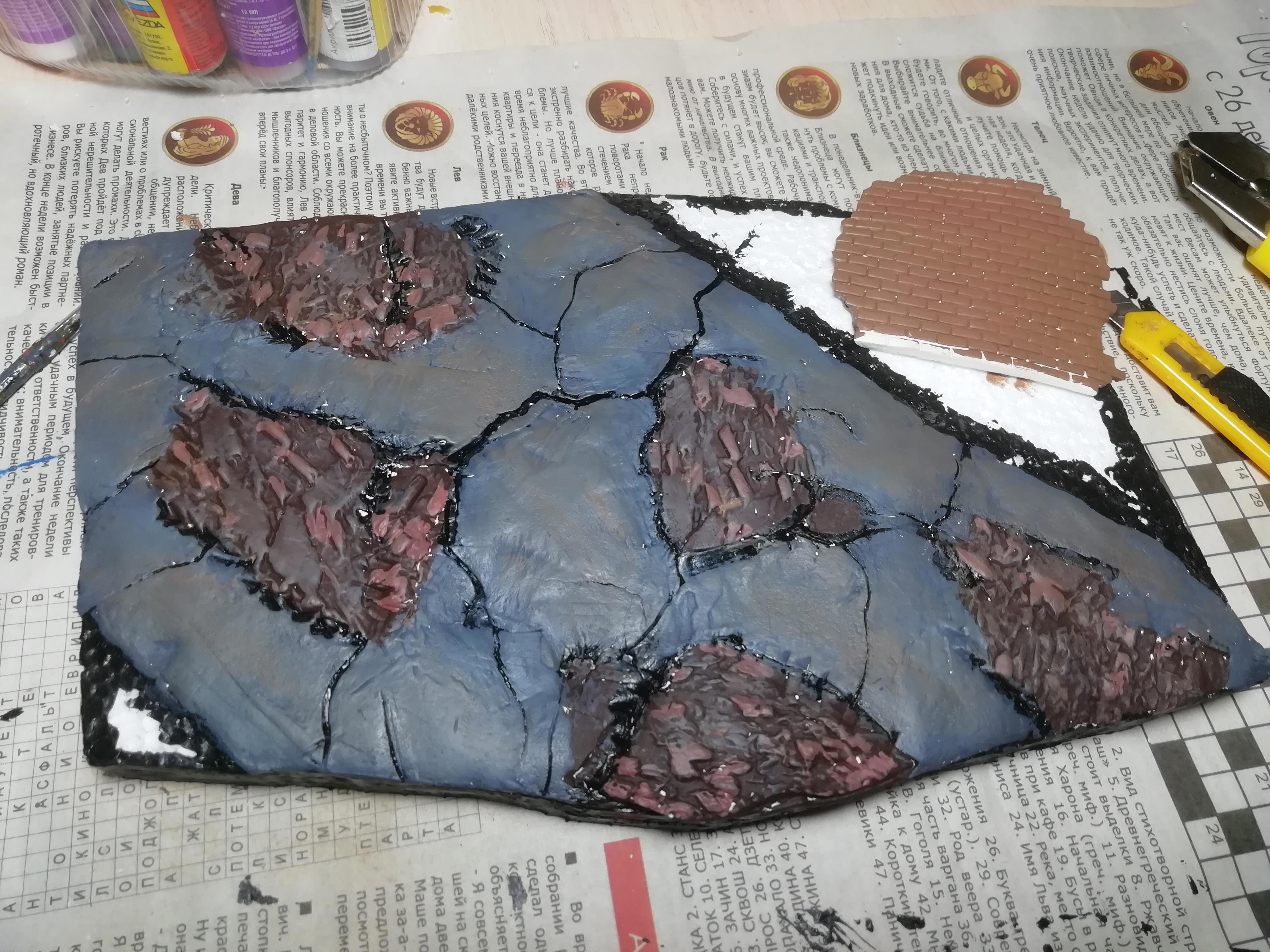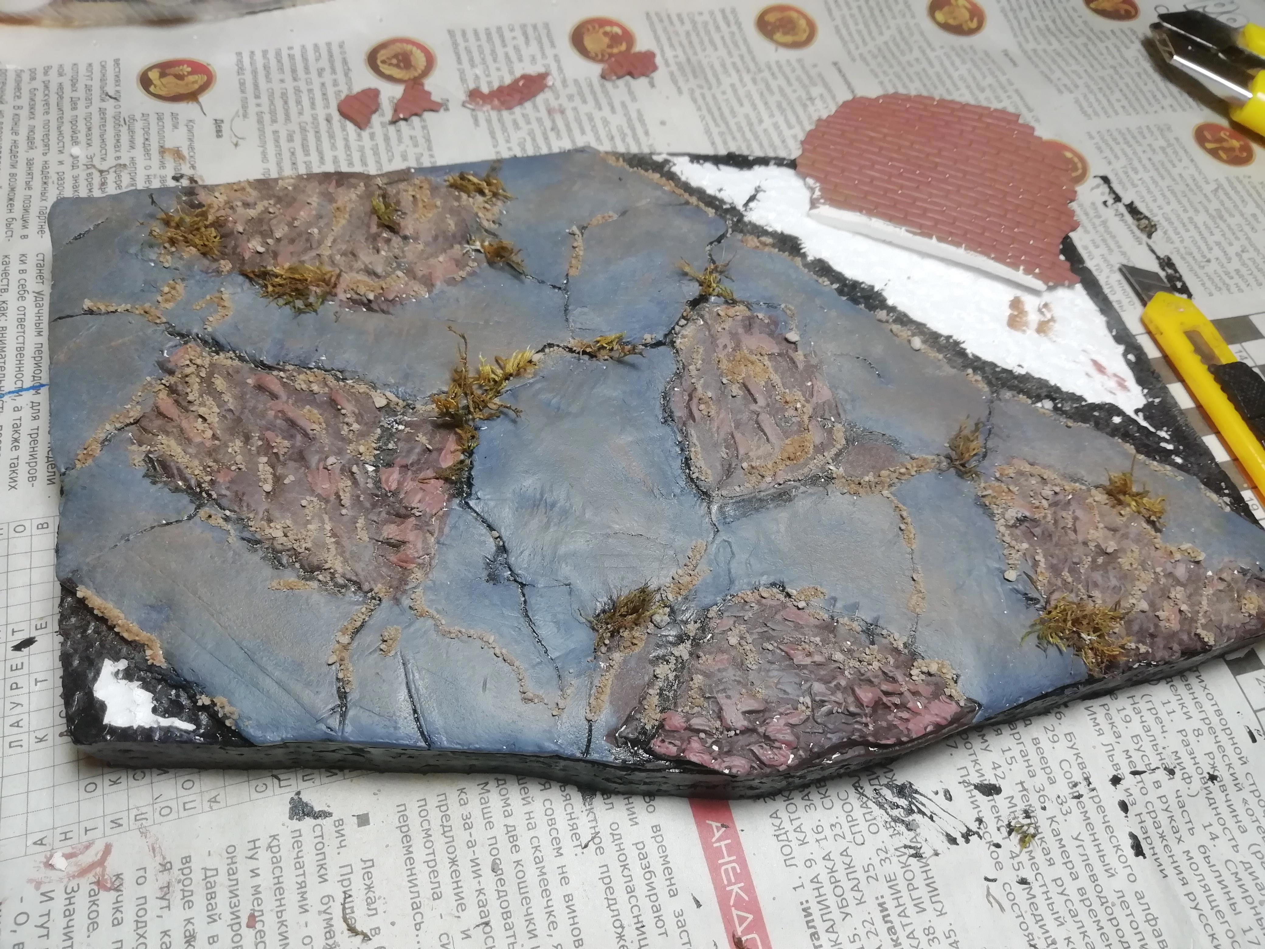 Прорисовал в два цвета асфальт, нарисовал кирпичи в земле. Затонировал "грязью":