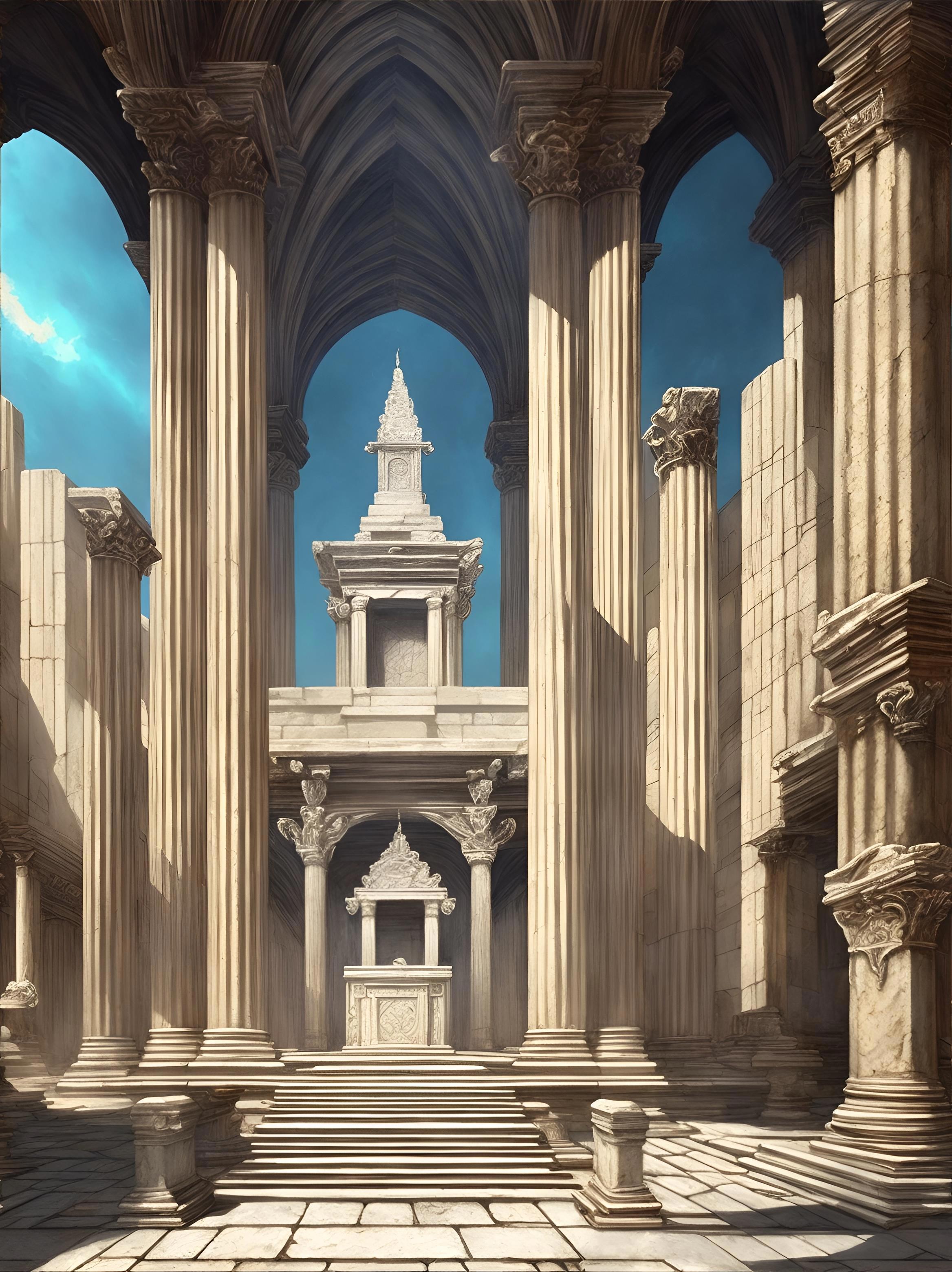 Площадь упиралась в белую башню, пиком уходящую в небеса – Сенат Эндроса. У ее подножья по левую сторону стояло небольшое святилище в честь Вечного солнца как символа чистоты и справедливости; по правую сторону протянулся открытый постамент, украшенный полукругом резных колонн.