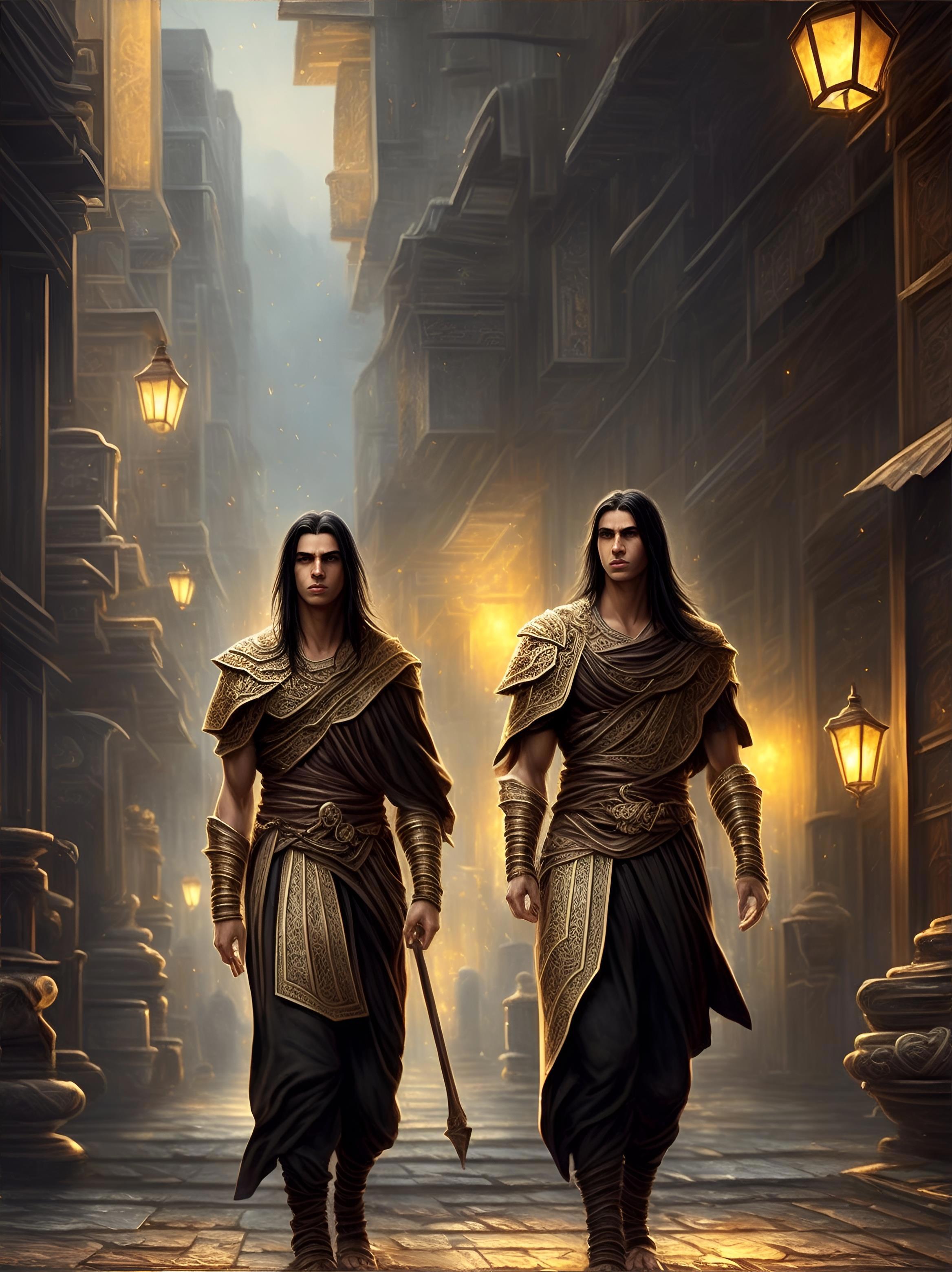 Старый город был полон шорохов и звуков: от пения ночных птиц до плеска лягушек в маленьких прудах. Сантар глазел по сторонам, то и дело спотыкаясь на ровном месте. Лазареты, продовольственные склады, какое-то вычурное здание со множеством каменных завитушек на фасаде… Монетный двор! И бесчисленное множество базилик. Просторные улицы сменили парковые рощи; когда деревья поредели, а аллеи стали шире, Ягван прошептал ему в затылок: