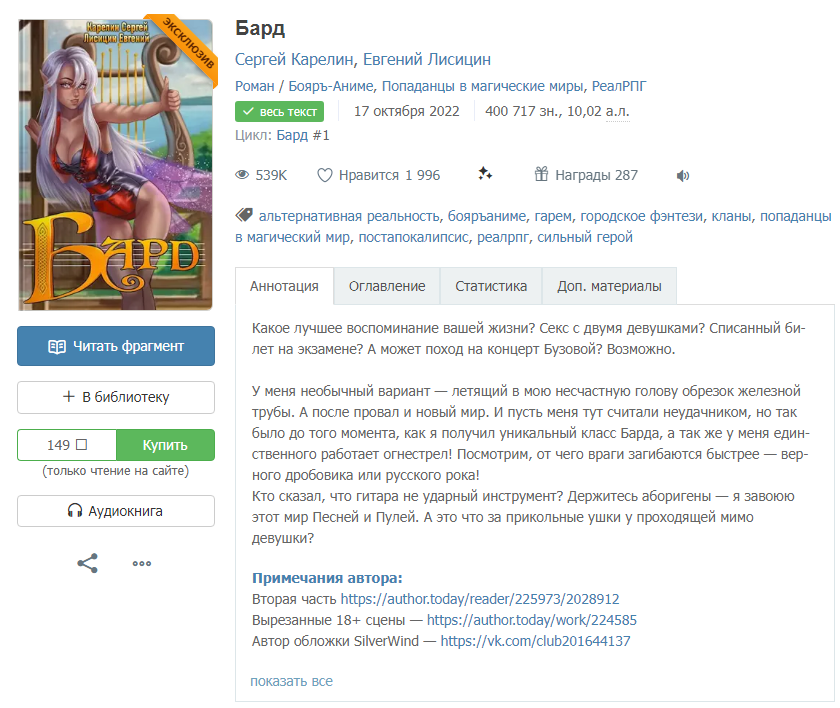 Внеочередной выпуск: https://author.today/post/283673