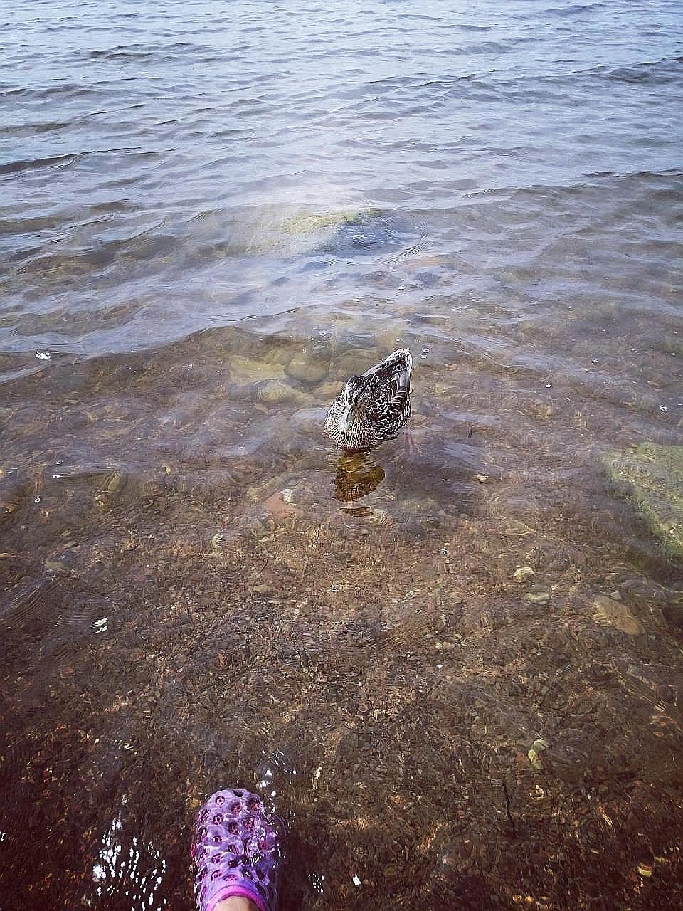 Тапок тут специально, дабы показать, как близко подплыла утка. Это не дефект и не небрежность.