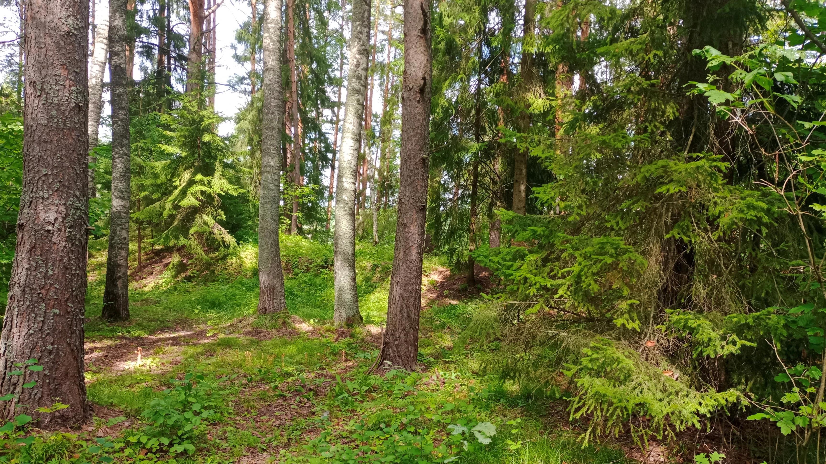 Вот возвышенность за тремя деревьями - это, вроде как, и есть тот вал.