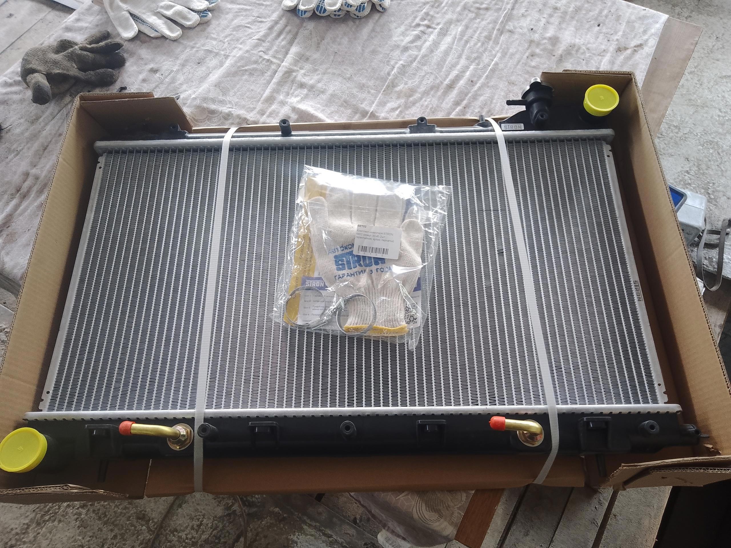 Радиатор фирмы СТРОН, в комплекте пробка, паспорт и гарантийник, два хомута на шланги, и перчатки. Перчатки меня особенно умилили - сервис! Посмотрим, как долго этот радиатор проживёт. Самое главное - протянуть штуцеры, к которым подцепляются шланги с коробочным маслом. Обычно они накручены, но не затянуты, и начинают люто ссать, но тут было всё подтянуто. Удивительно. И всё бы ничего, но вход-выход радиатора чуть меньшего диаметра, чем на родном. Ну, всё впечатление испортили! Шланги, конечно, обжались хомутами из комплекта, но это не есть гуд. Владелец уехал, а на следующий день привез гостинец - копченую рыбу, и был доволен, как слон - температура стоит чёто посередине.