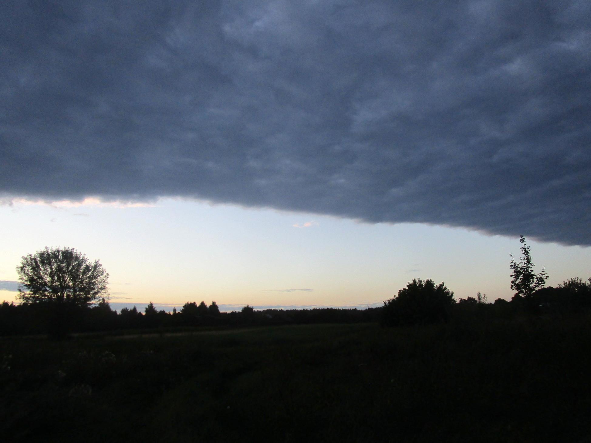 Автор: Анна ОвчинниковаВот такое небо у нас сегодня. Идешь под сплошным пологом туч, а впереди вечерняя розоватая голубизна. На фото плохо видно, а в реале это покрывало туч справа и слева во все небо, интересные ощущения под таким идти.
