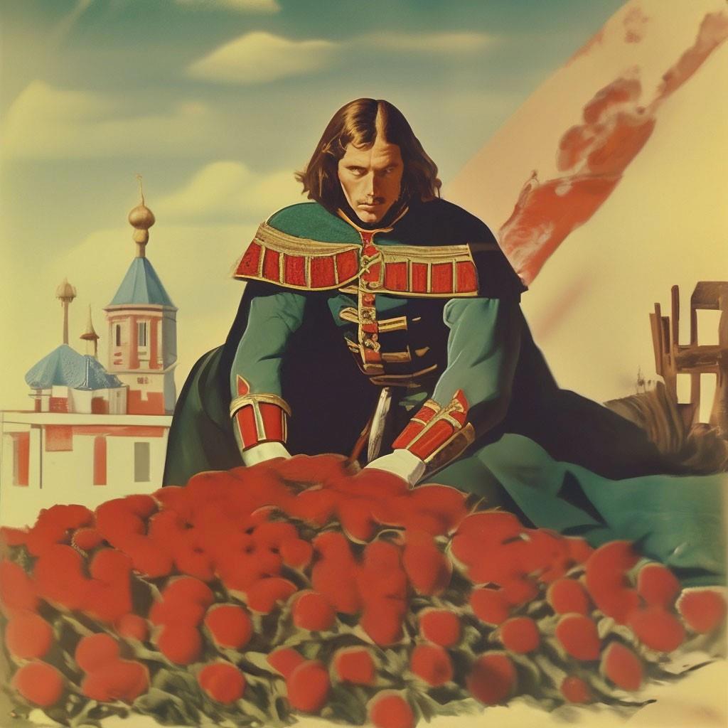 На «жертва царевича», нейросеть выдала молодого Петра I принёсшего миллион алых роз на место строительство будущего города.