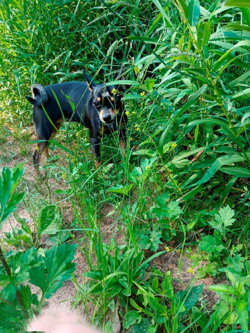 В городе, на прогулке, наши тойки всегда ходят парочкой, но в лесу они разделились. Пуня, как гламурная барышня, сходу сообщила, что далеко, устаёт, муравьи – и вот, комар пытался укусить за макушку, опасный лес – и решила, что лучше ехать, чем идти. А Солька бродила по лесу, как дед. И носилась вдоль кромки воды, как любил дед. И не думала просить о помощи, потому что дед так никогда не делал.