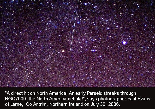 "Метеориты Персеиды образуются из обломков гигантской кометы 109/P Свифта-Таттла шириной 16 миль, которая прошла ближе всего к Земле в 1992 году." "Эта комета с периодом обращения около 133 лет..." "Ливень обычно начинается в середине июля, достигая кульминации в середине августа. Пик активности обычно приходится на ночь с 12 августа на раннее утро 13 августа."