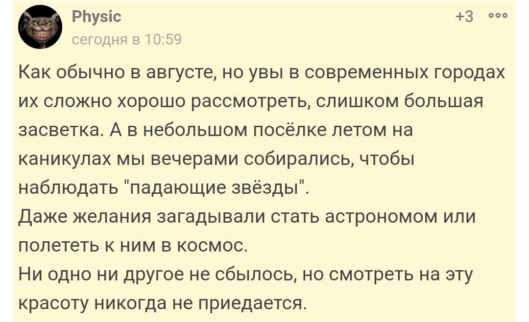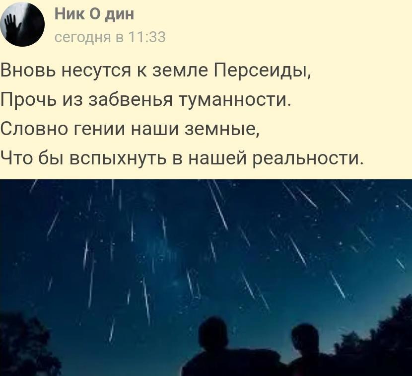 ”. “Если вы собираетесь наблюдать какой-либо метеорный поток в этом году”, то Персеиды в этом месяце - “то, что нужно увидеть”. Его совет тем, кто хочет стать свидетелем этого астрономического чуда? - Просто откинься на спинку стула, закрой глаза и любуйся небом. Ты увидишь, как проносятся Персеиды.”